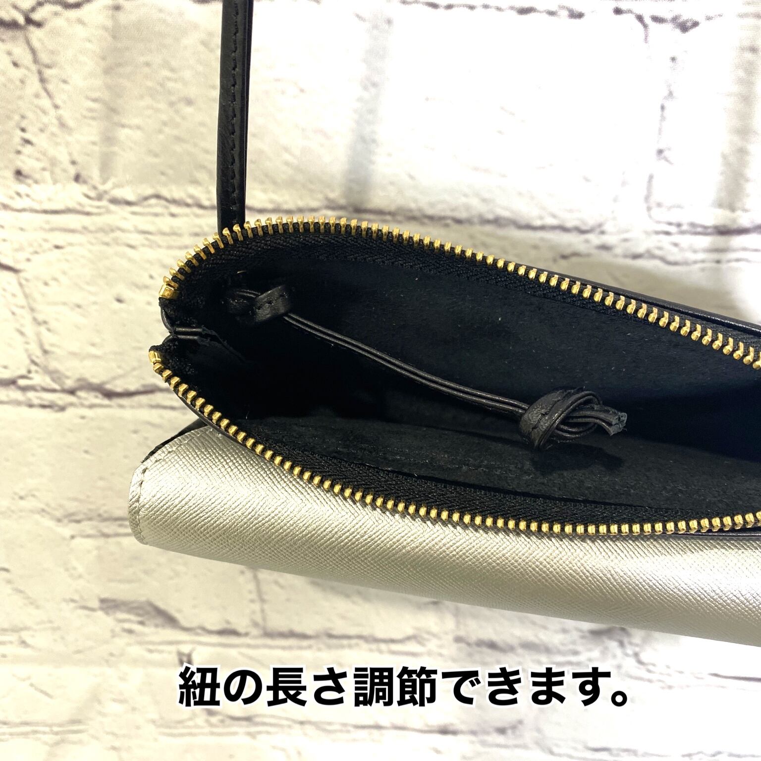 柔らかいレザー仕様のお財布ポシェットです。紐で長さ調節できます。外側のファスナー部分にはスマホやキー、リップを入れたり、内側のポケットにはハンカチ!など使いやすいようにアレンジ♡ カード12枚収納可能、そのままお札、小銭を入れてお財布としてもご利用できます。 日本製。