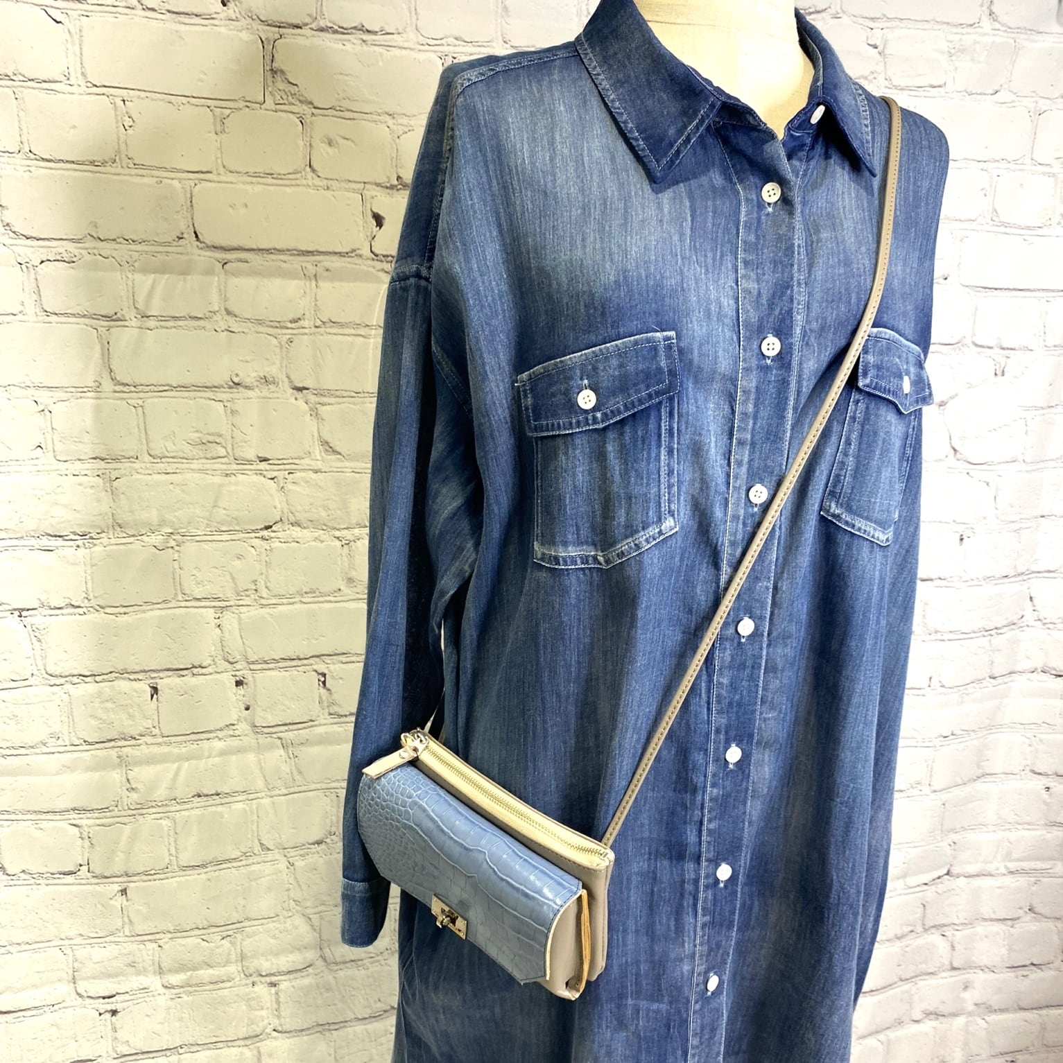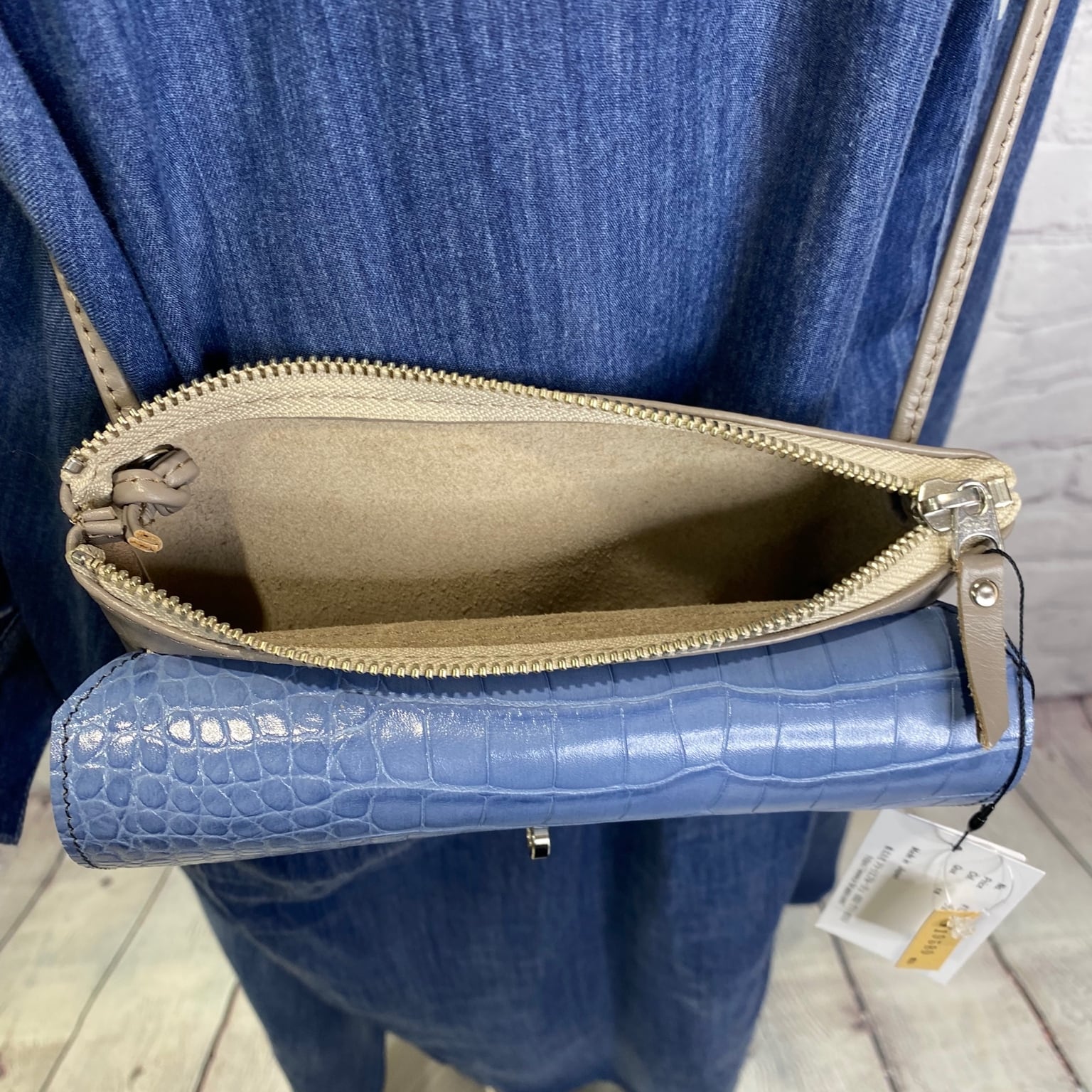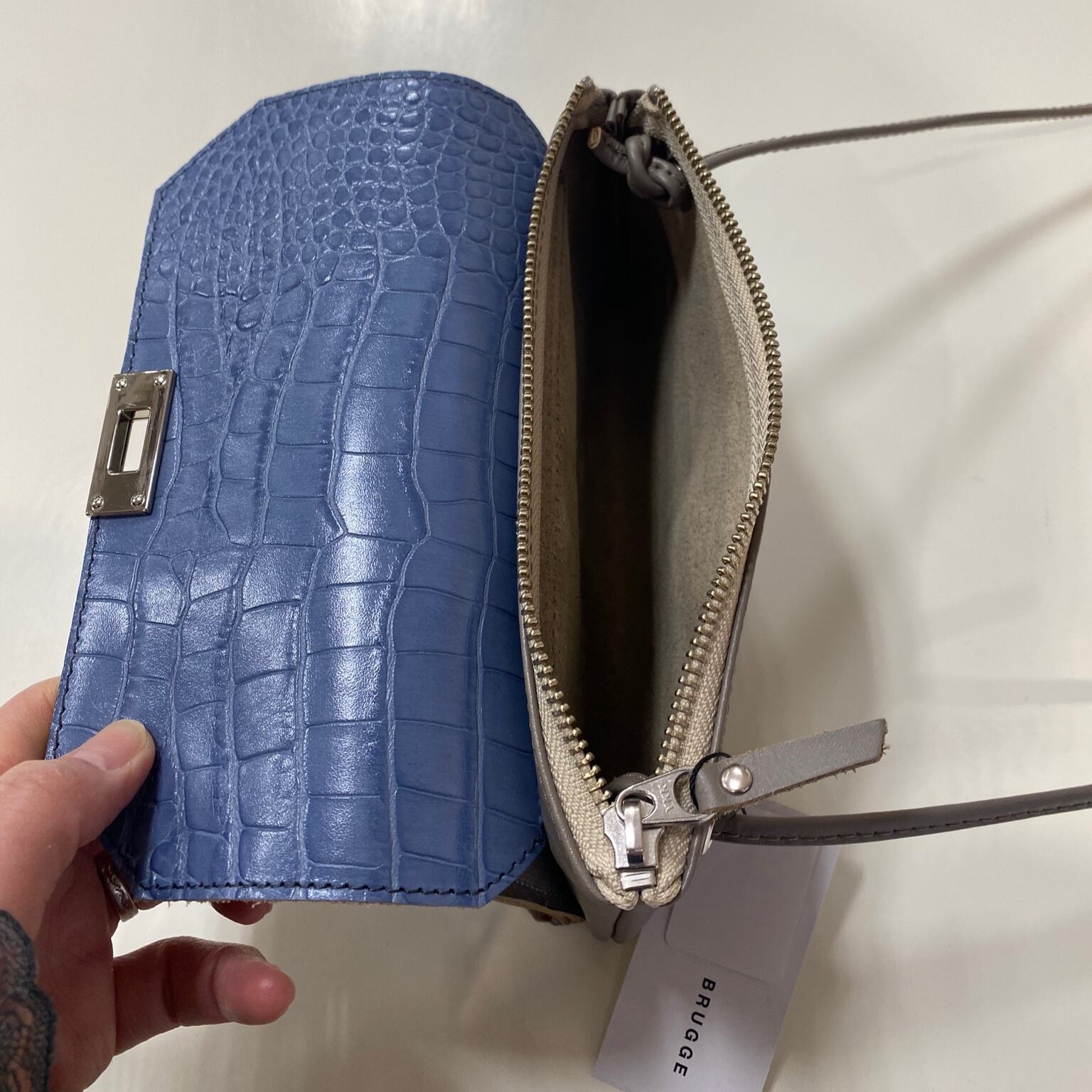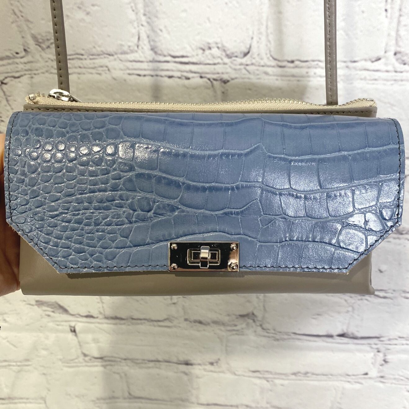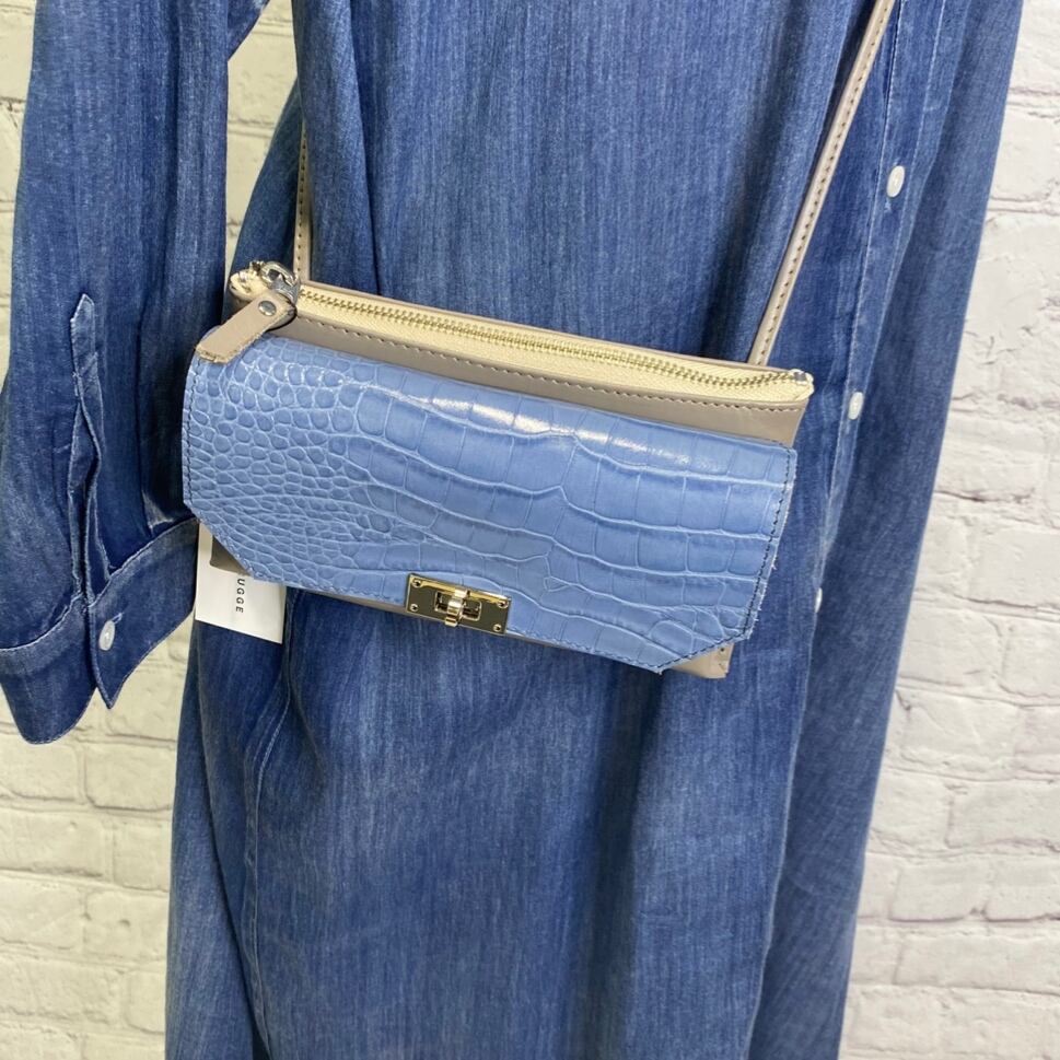 カラー:ブルー(クロコ型押し)×グレー