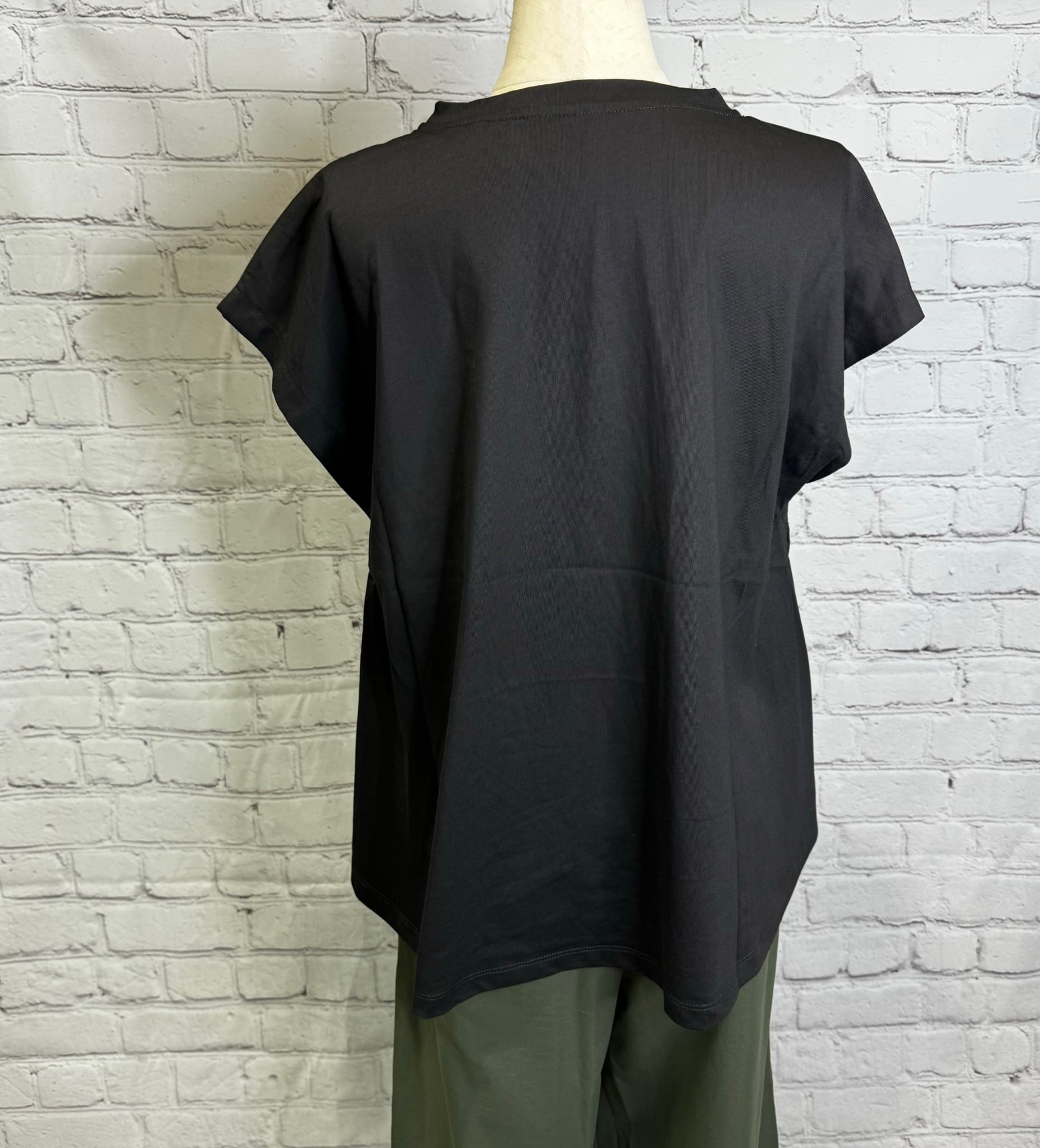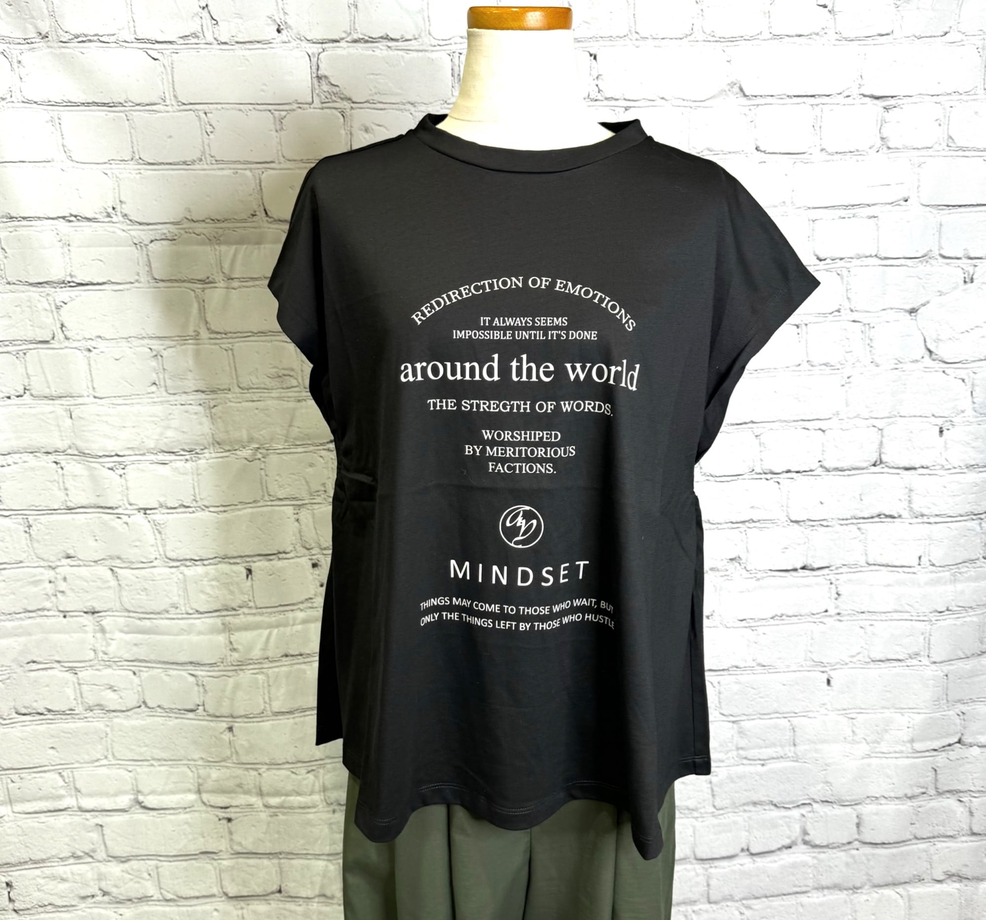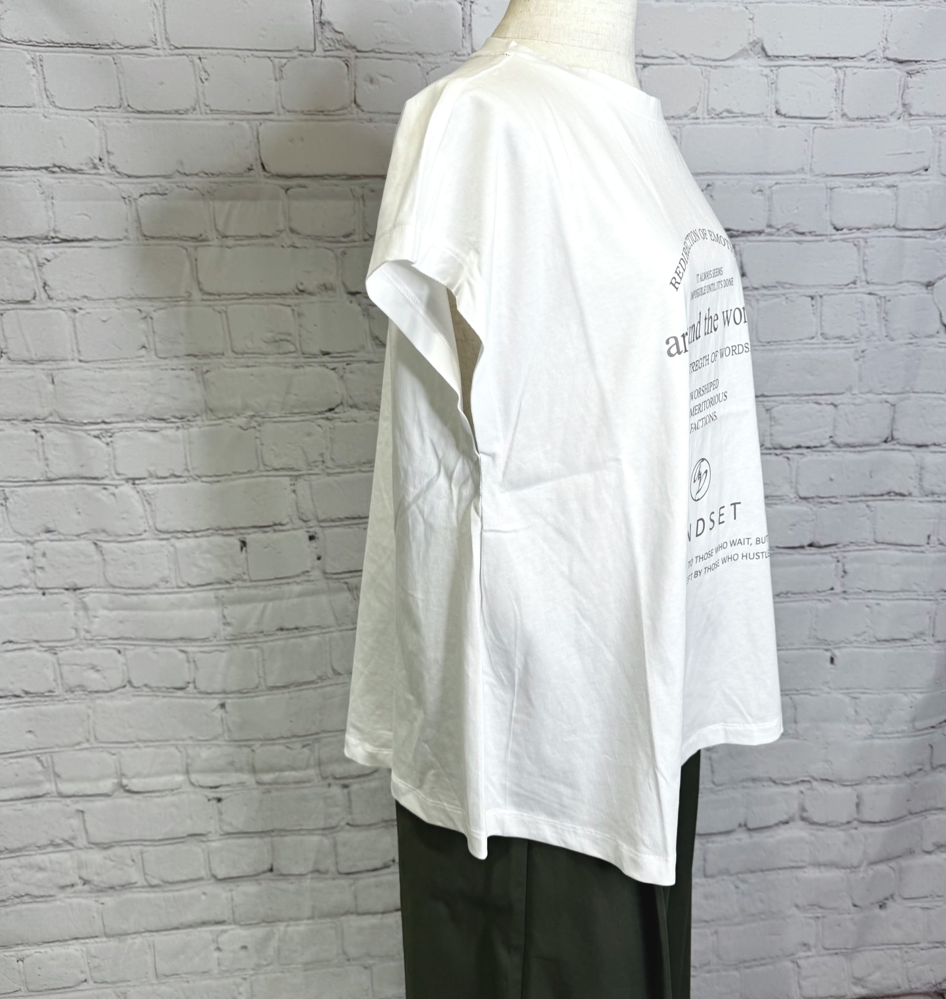 ソフトなコットン100%のロゴTシャツです。Aラインのシルエットなので、気になるお腹周りも優しくカバー。ロゴも大人な印象になるようなフォントやカラーをピックしてあります。厚くないのでインナーとしても便利なアイテムです。お家で洗えます。