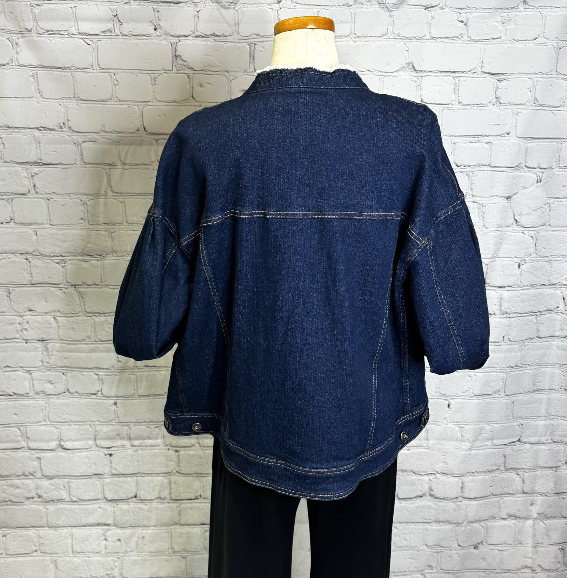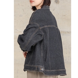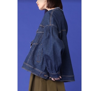 柔らかなソフトストレッチ素材のデニムジャケットです。ボリューム袖とスタンドネックで女性らしさをプラス♡ 程よい丈感でボトムス選ばず、季節的にもインナー次第で長く着用でき、コーデしやすいアイテムです。ポケットあり。お家で洗えます。