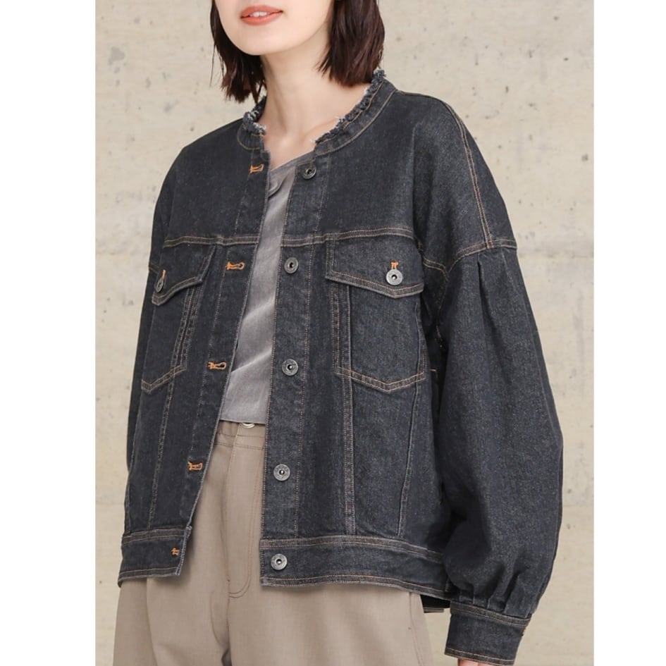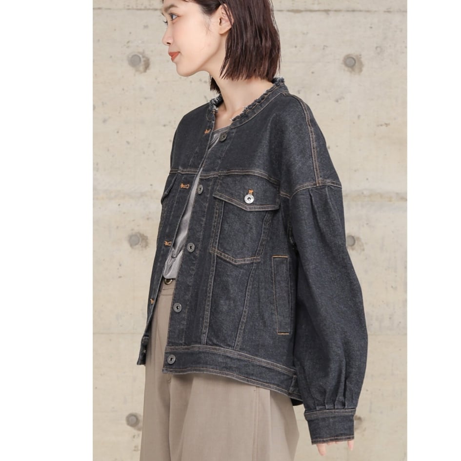 trois トロワ スタンドネックデニムジャケット