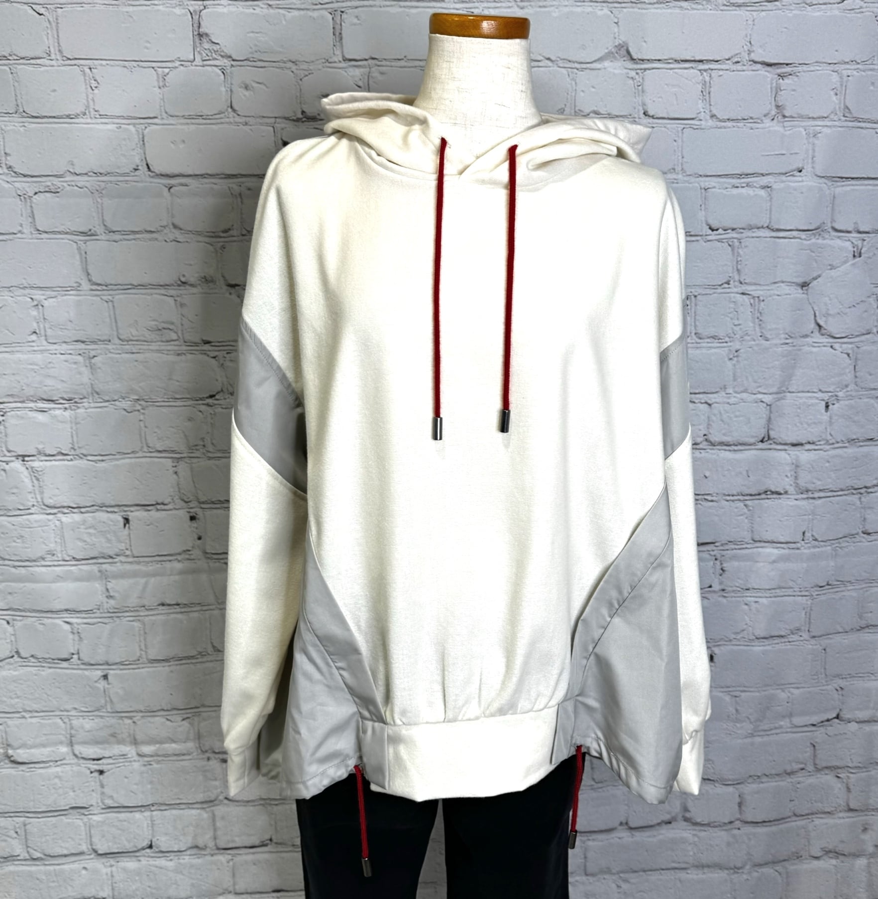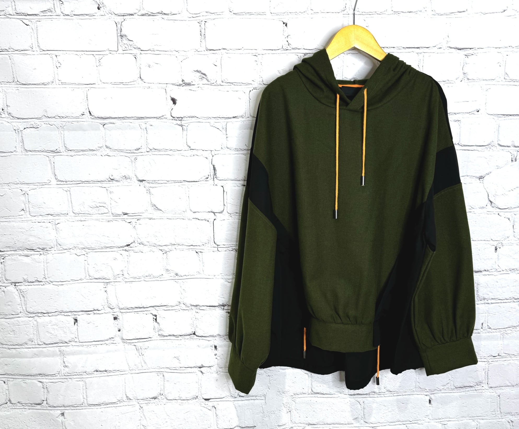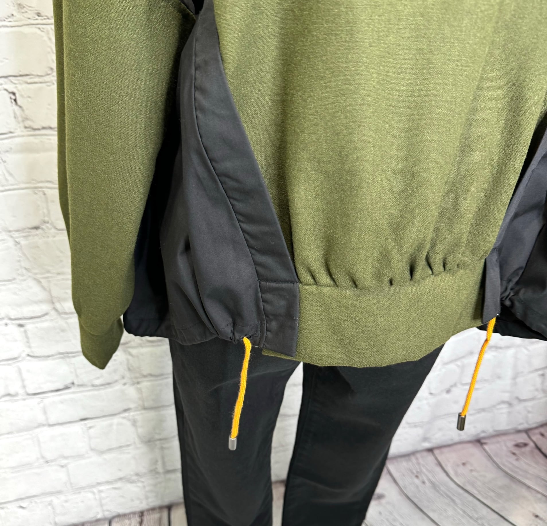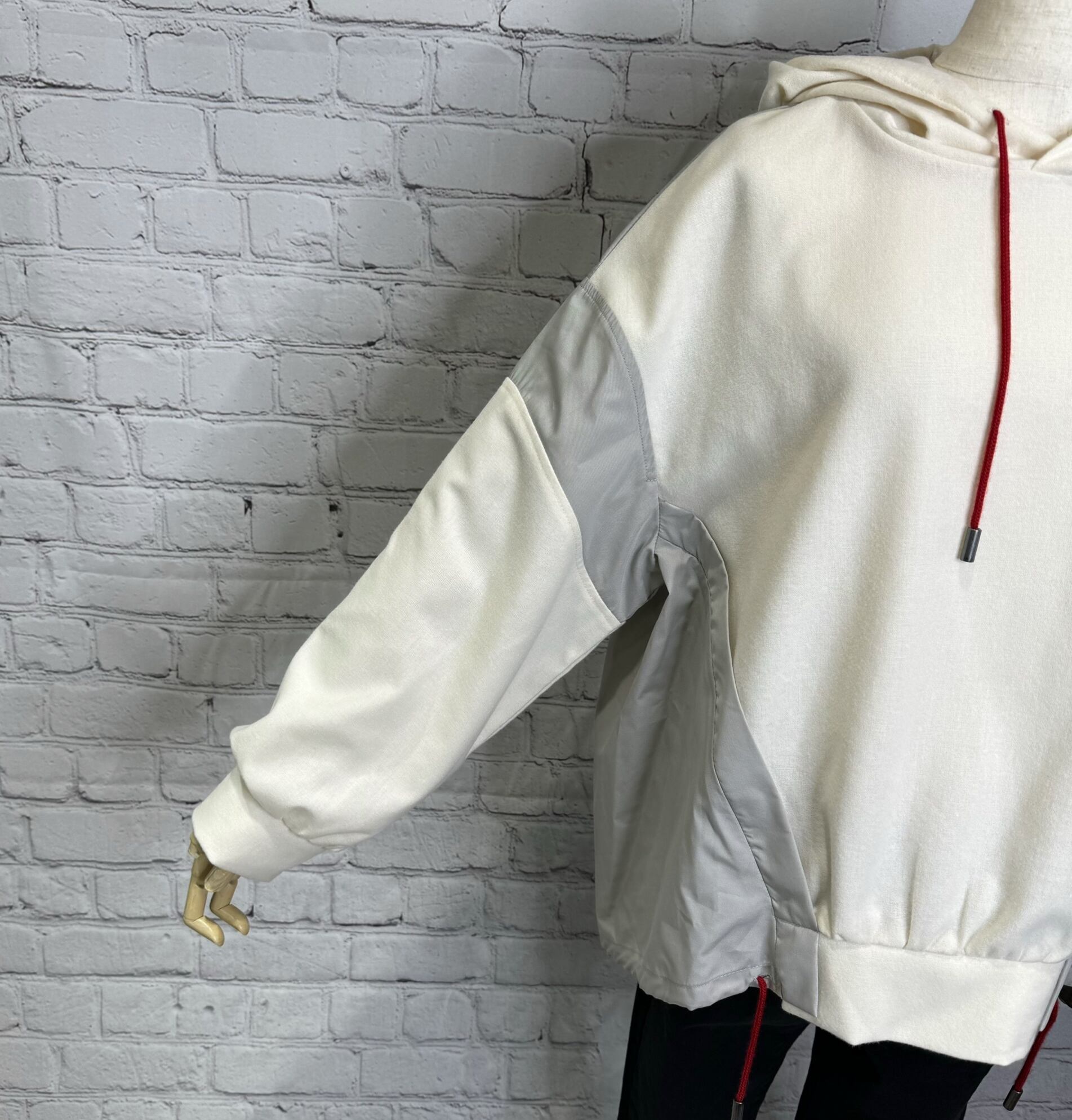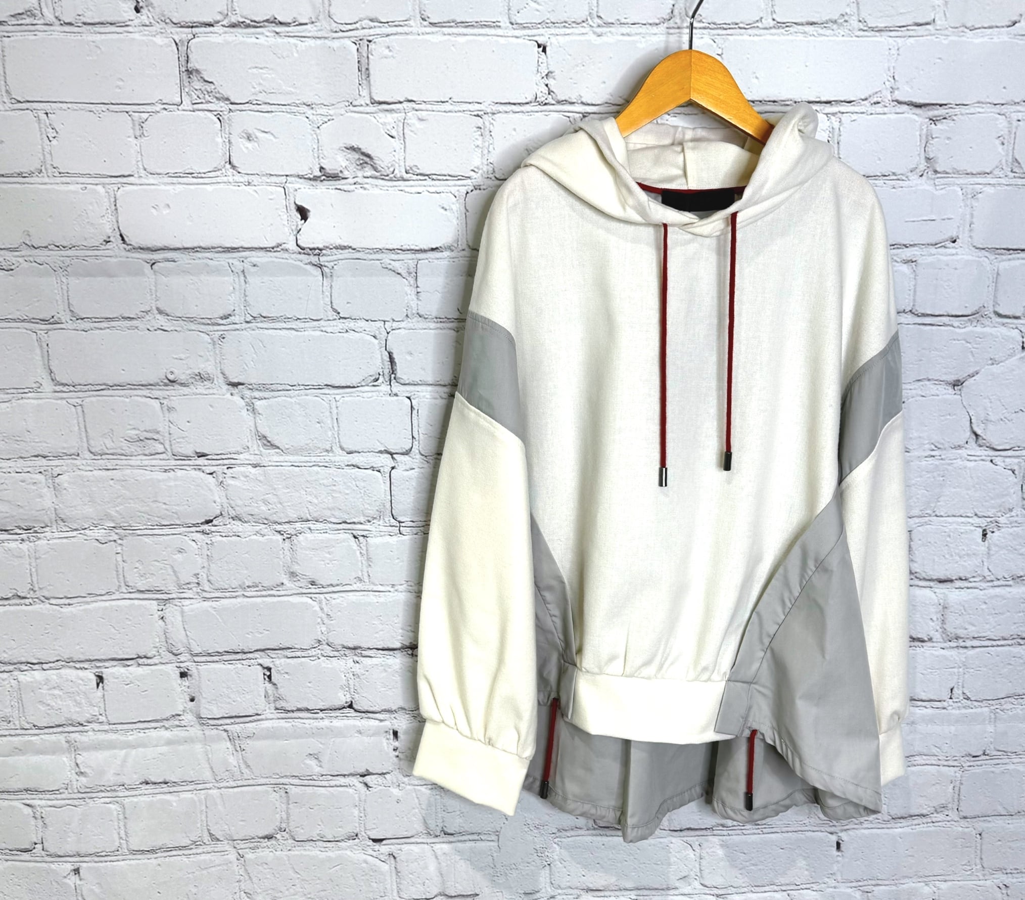 布帛とちょい微起毛のドッキングパーカーです!紐のカラーが可愛いポイントです♡ パンツでもスカートでもコーデしやすくておすすめです。裾のドロストでシルエット変えられます。お家で洗えます。