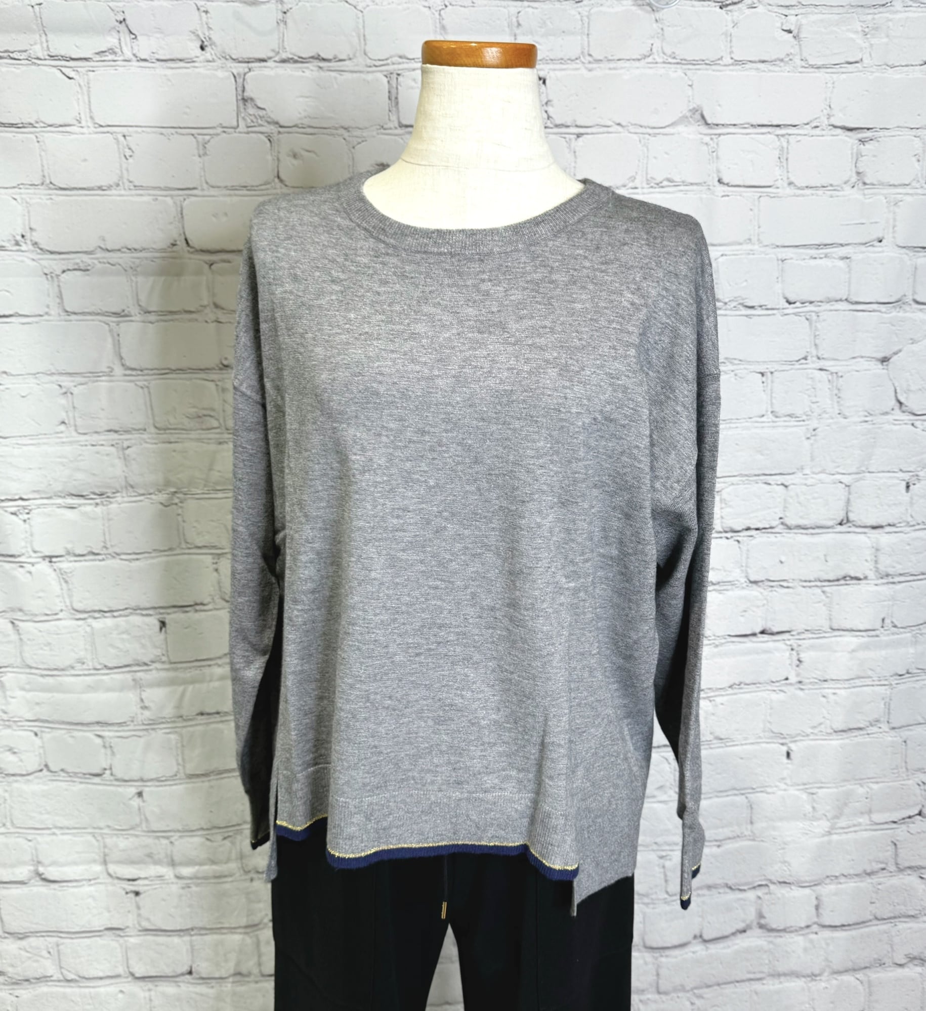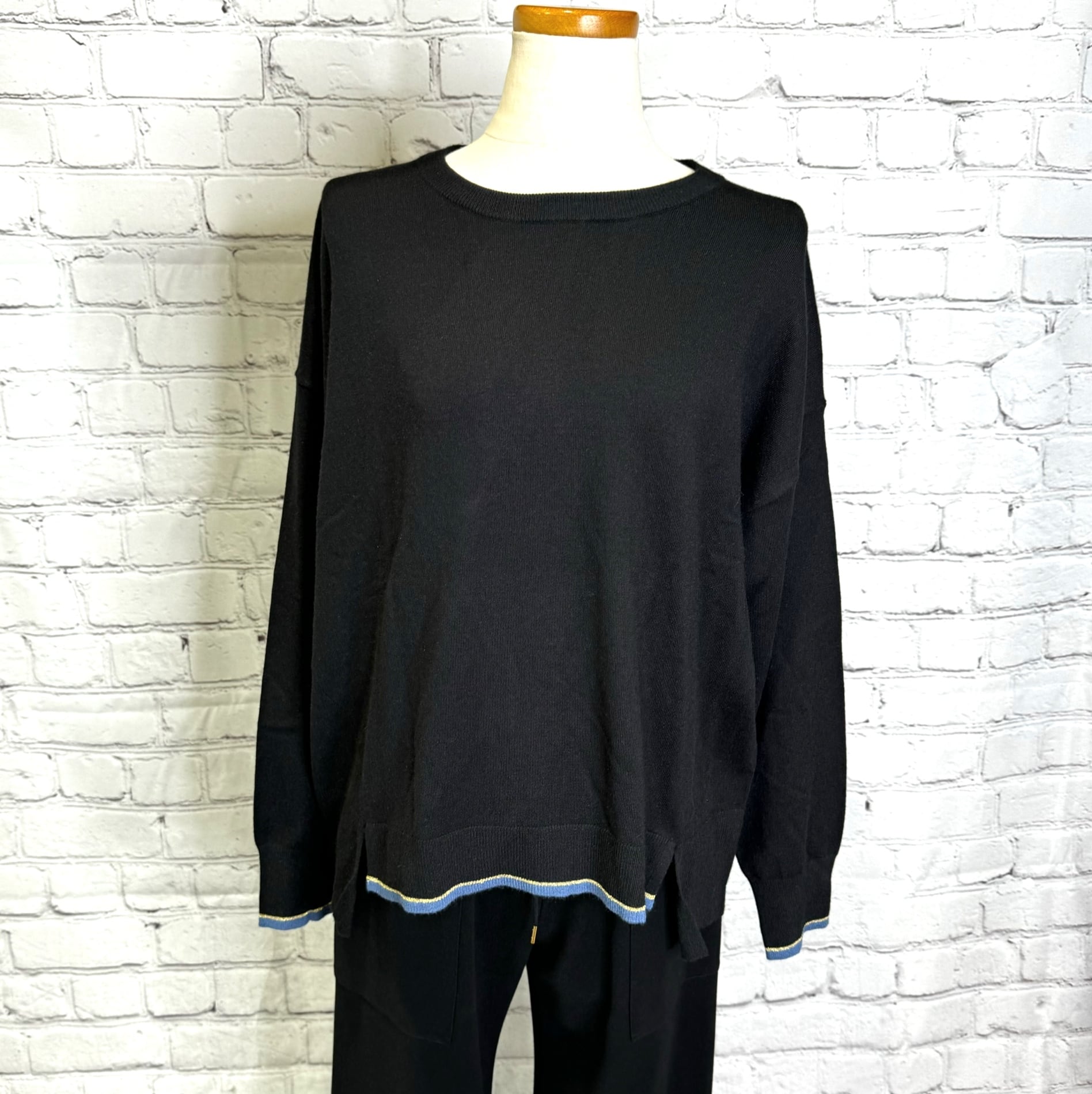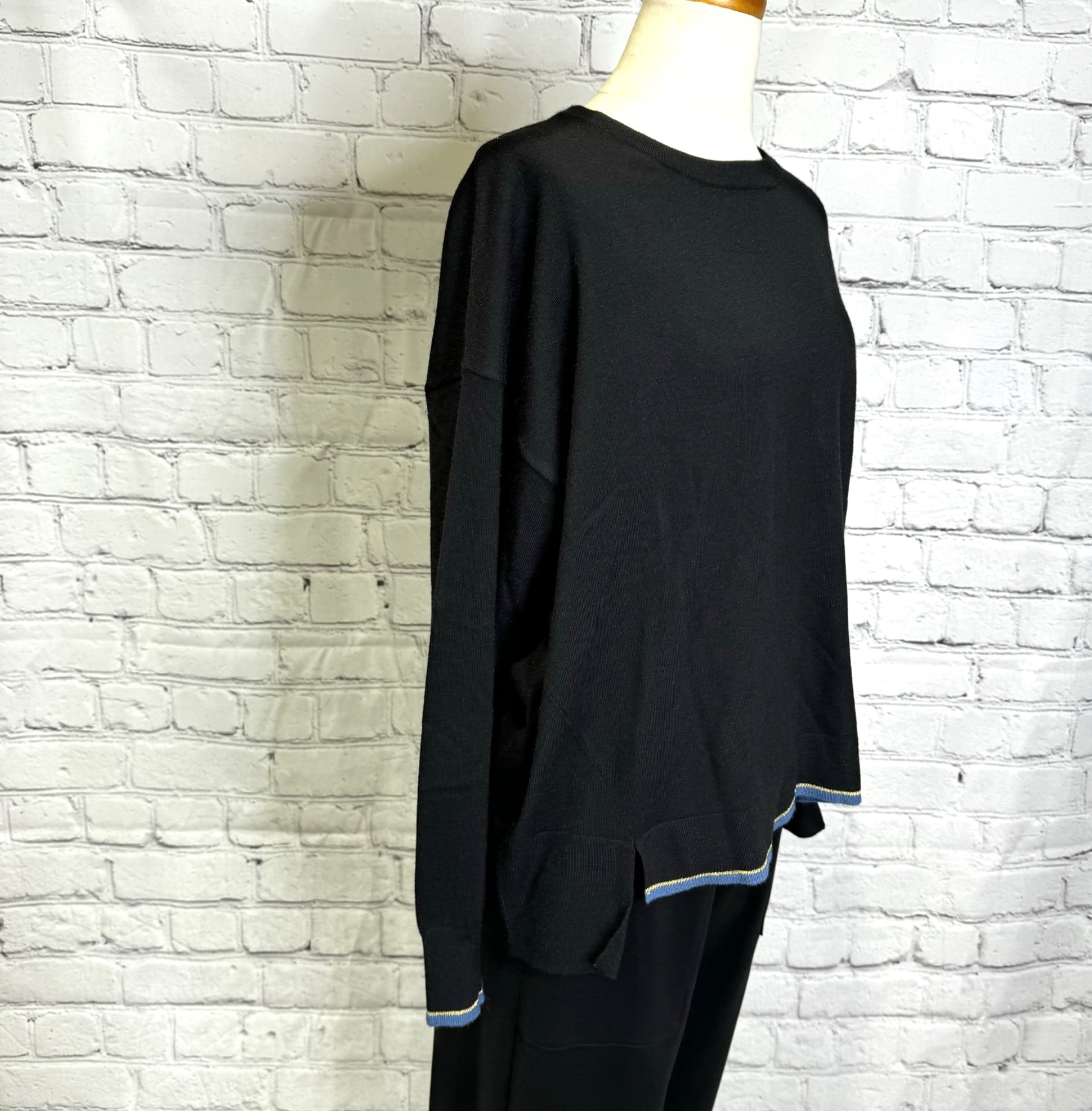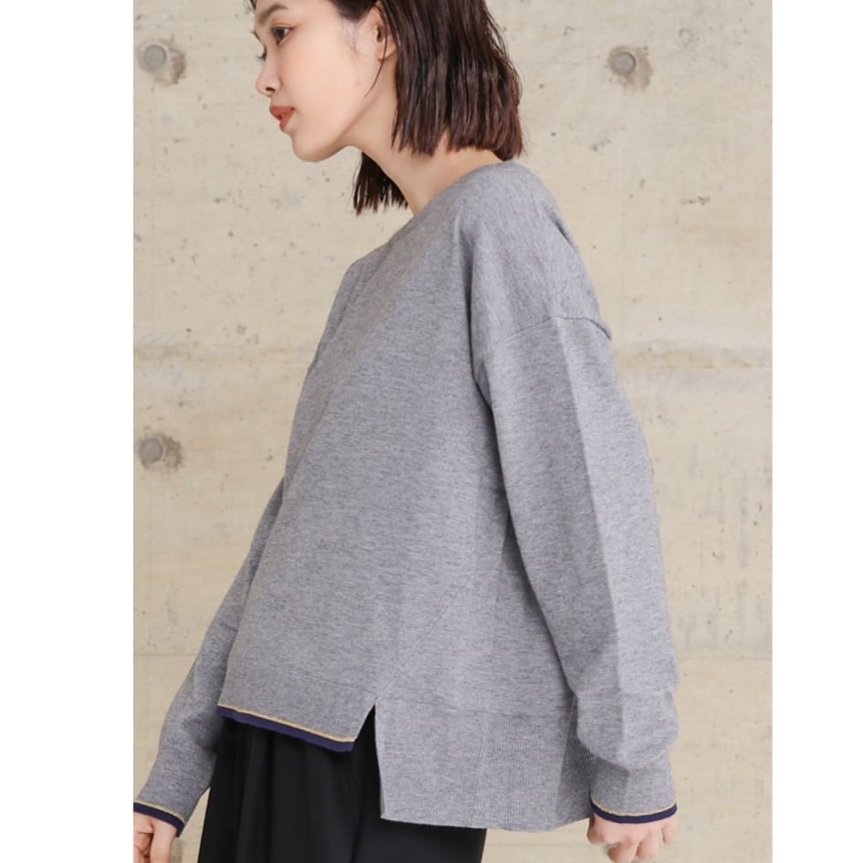 袖口と前裾に配色を施したさらっと着用出来るプルオーバーニットです。チクチクせずにノンストレスで、ウールが苦手な方にも喜ばれるニットです。シンプルなのでボトムス選ばず、カジュアルにもきれいめにも着用できます。厚くないのでアウターとの相性も◎ お家で洗えます。