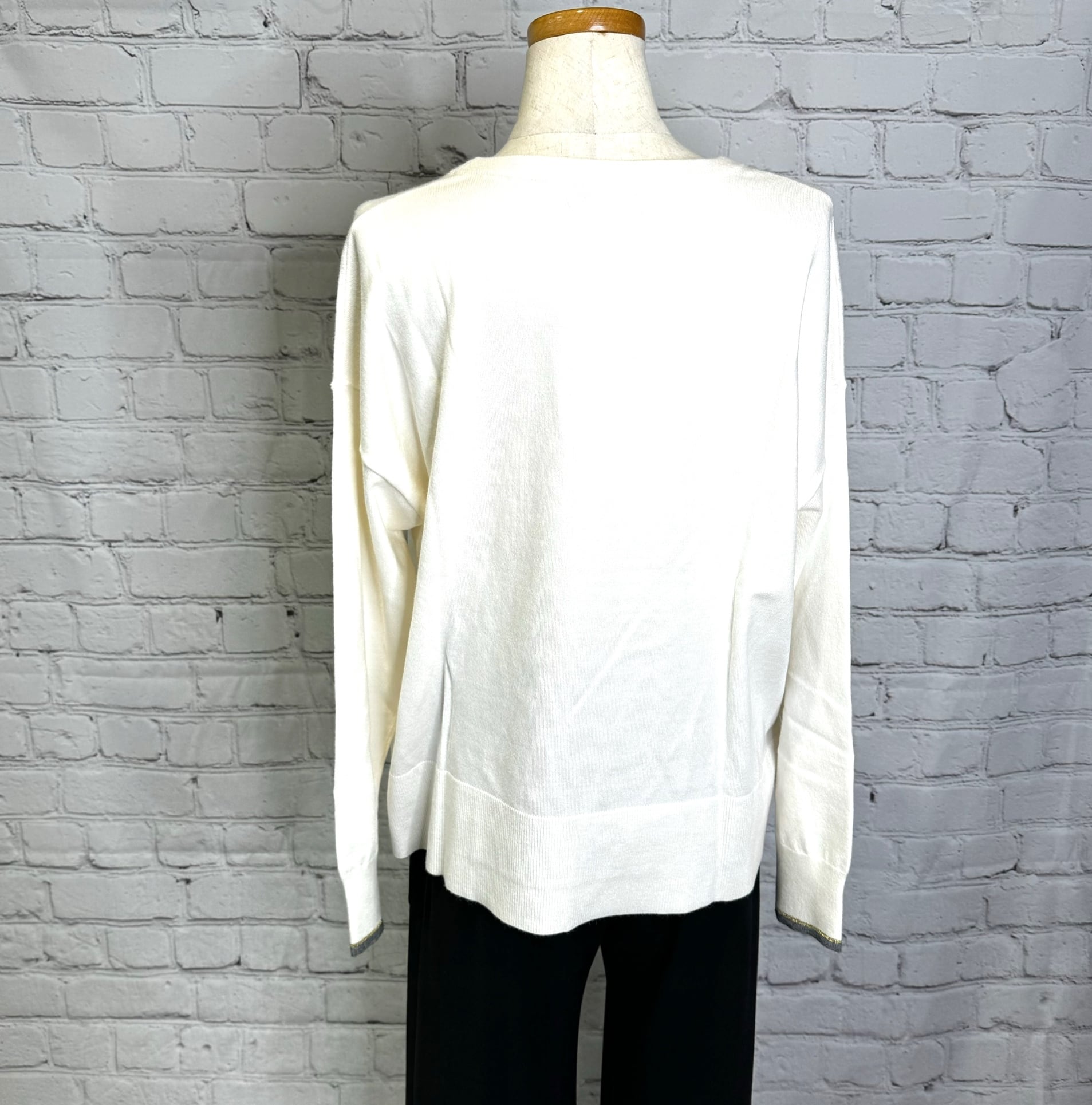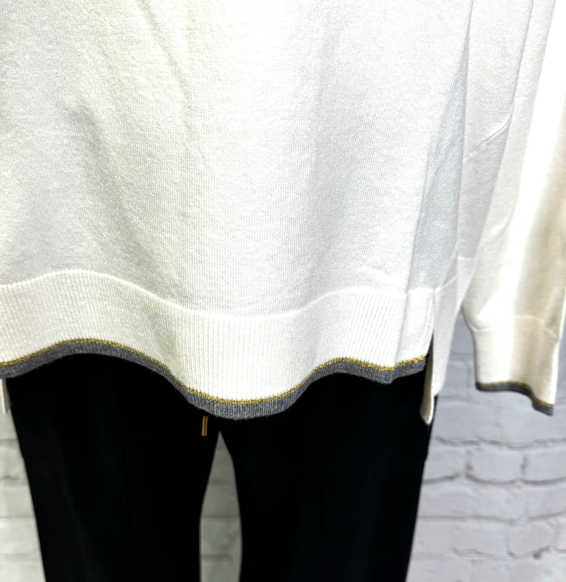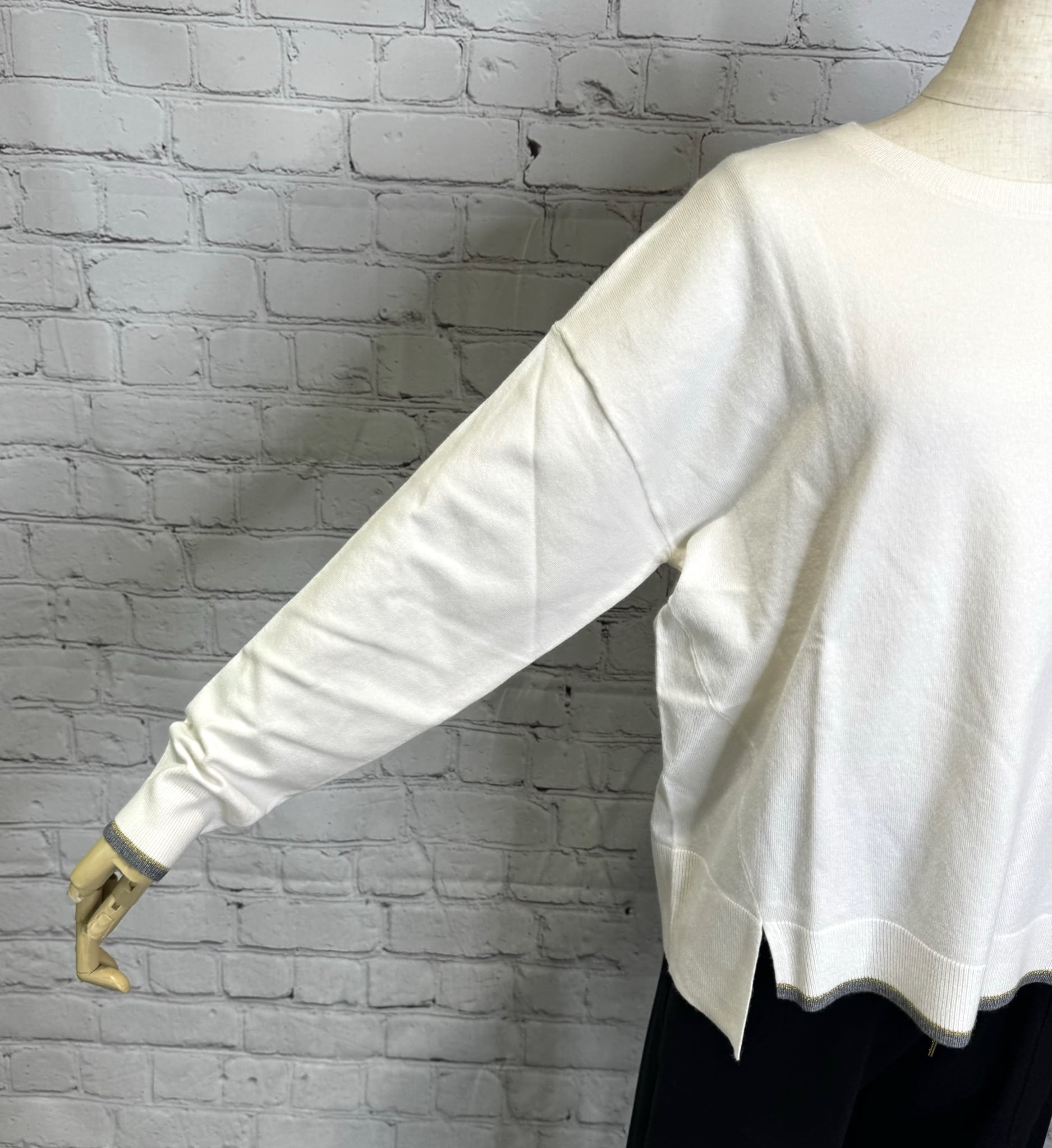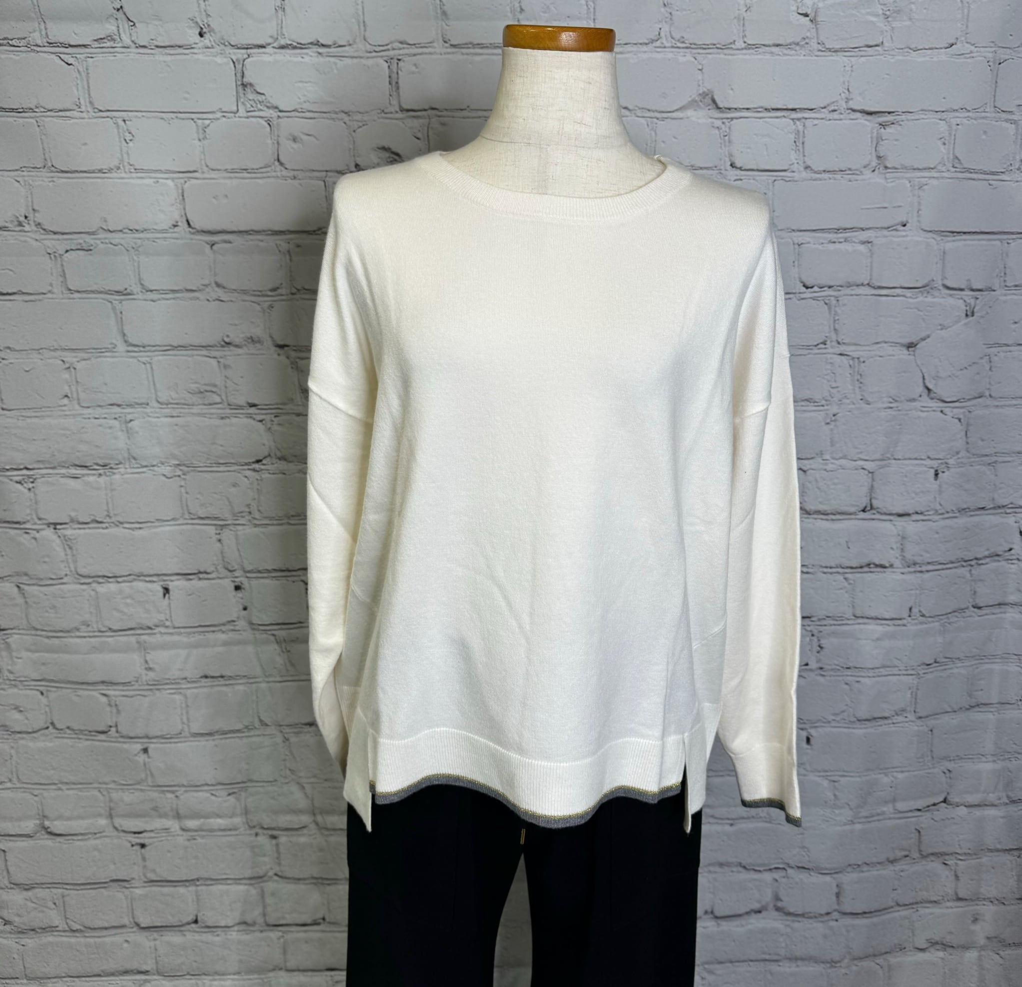 袖口と前裾に配色を施したさらっと着用出来るプルオーバーニットです。チクチクせずにノンストレスで、ウールが苦手な方にも喜ばれるニットです。シンプルなのでボトムス選ばず、カジュアルにもきれいめにも着用できます。厚くないのでアウターとの相性も◎ お家で洗えます。