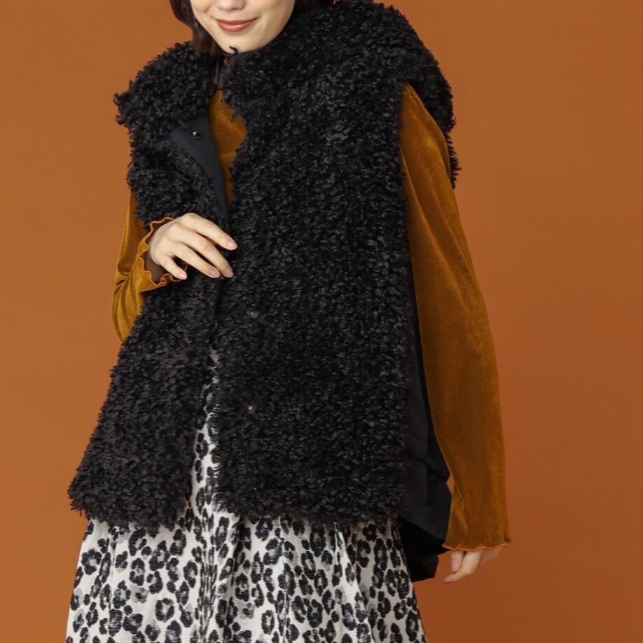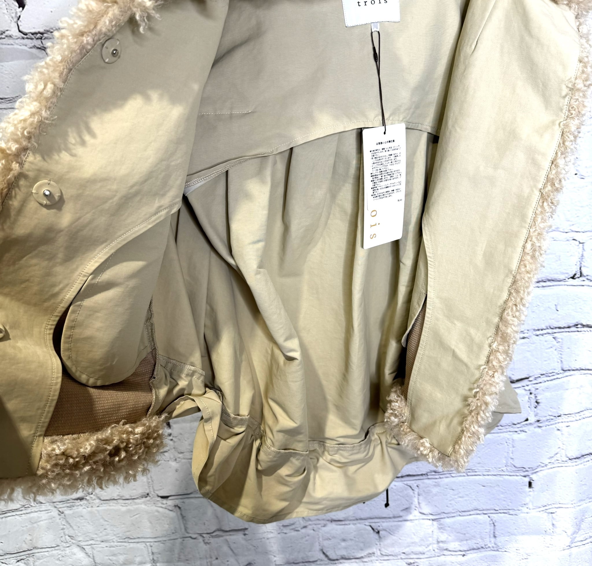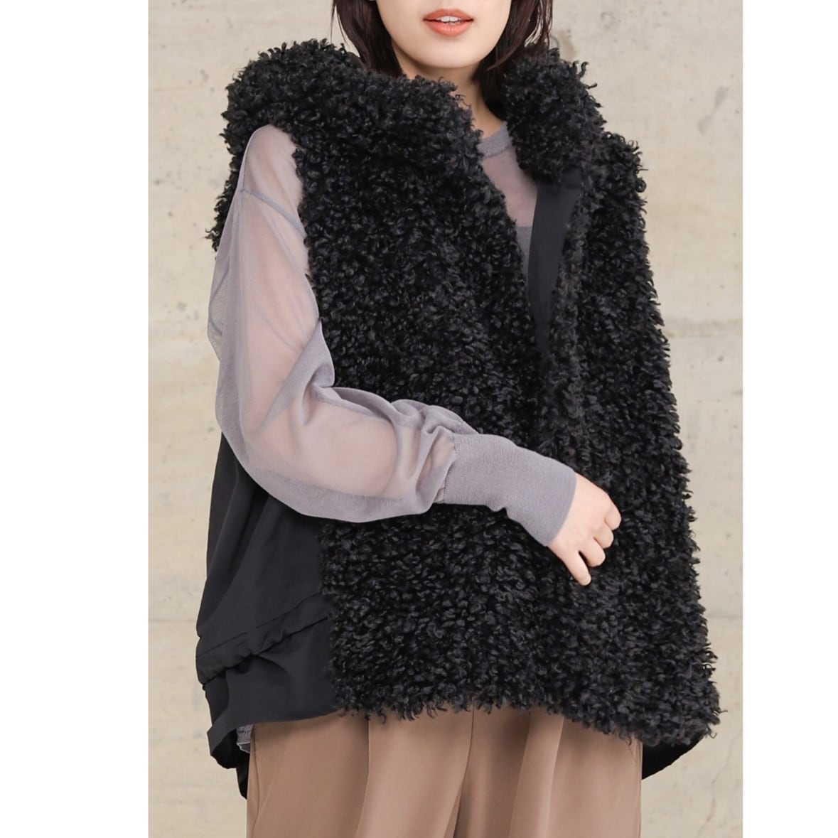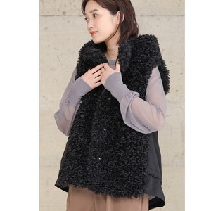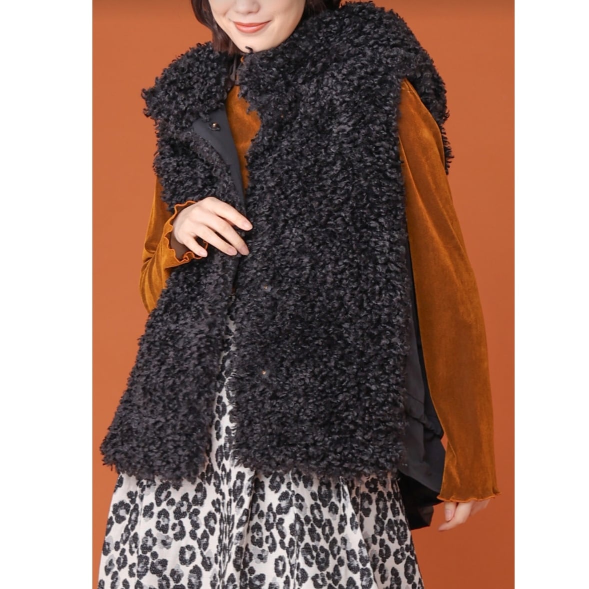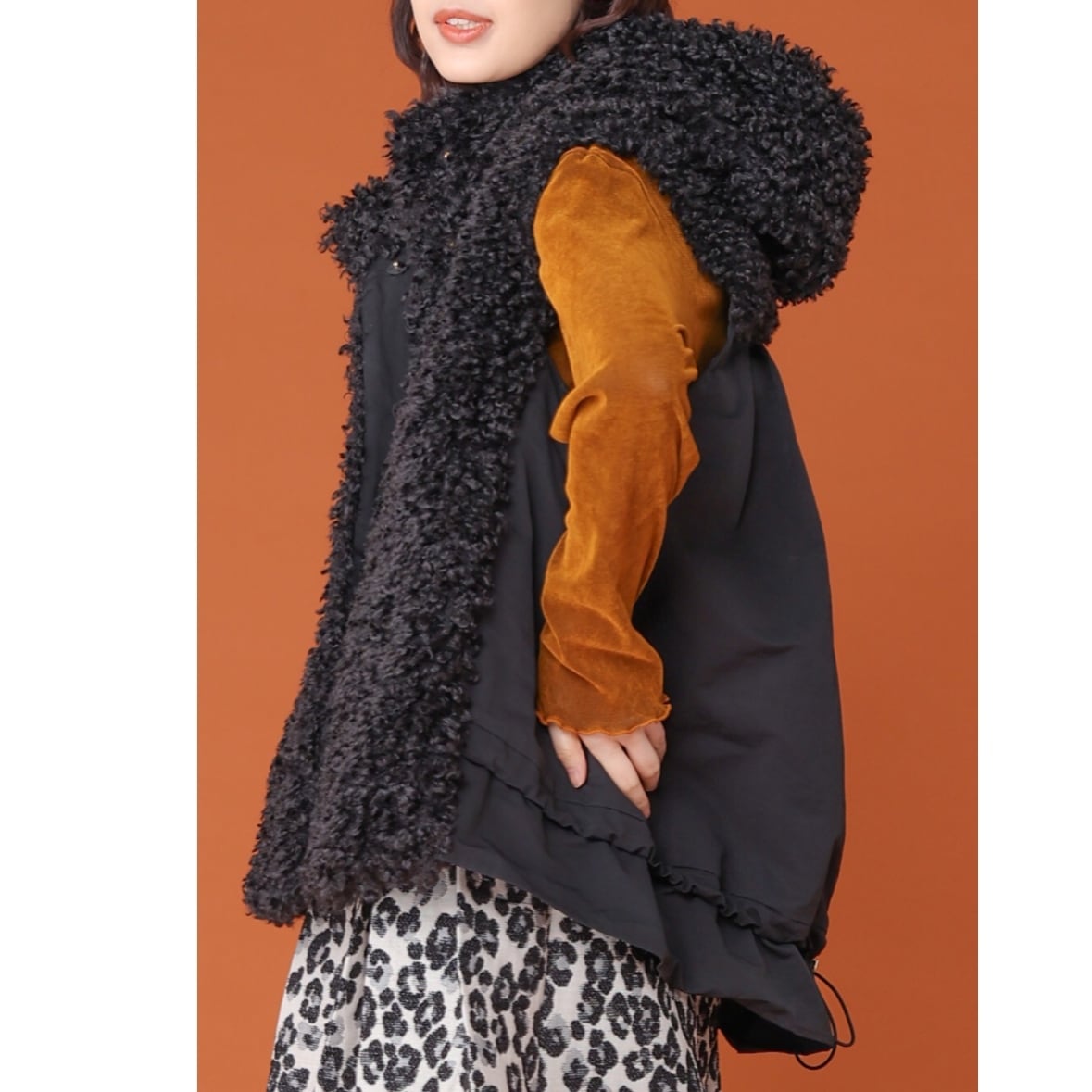 SALE!trois トロワ ミミクリーシープファーフーデッドベスト T246-83009