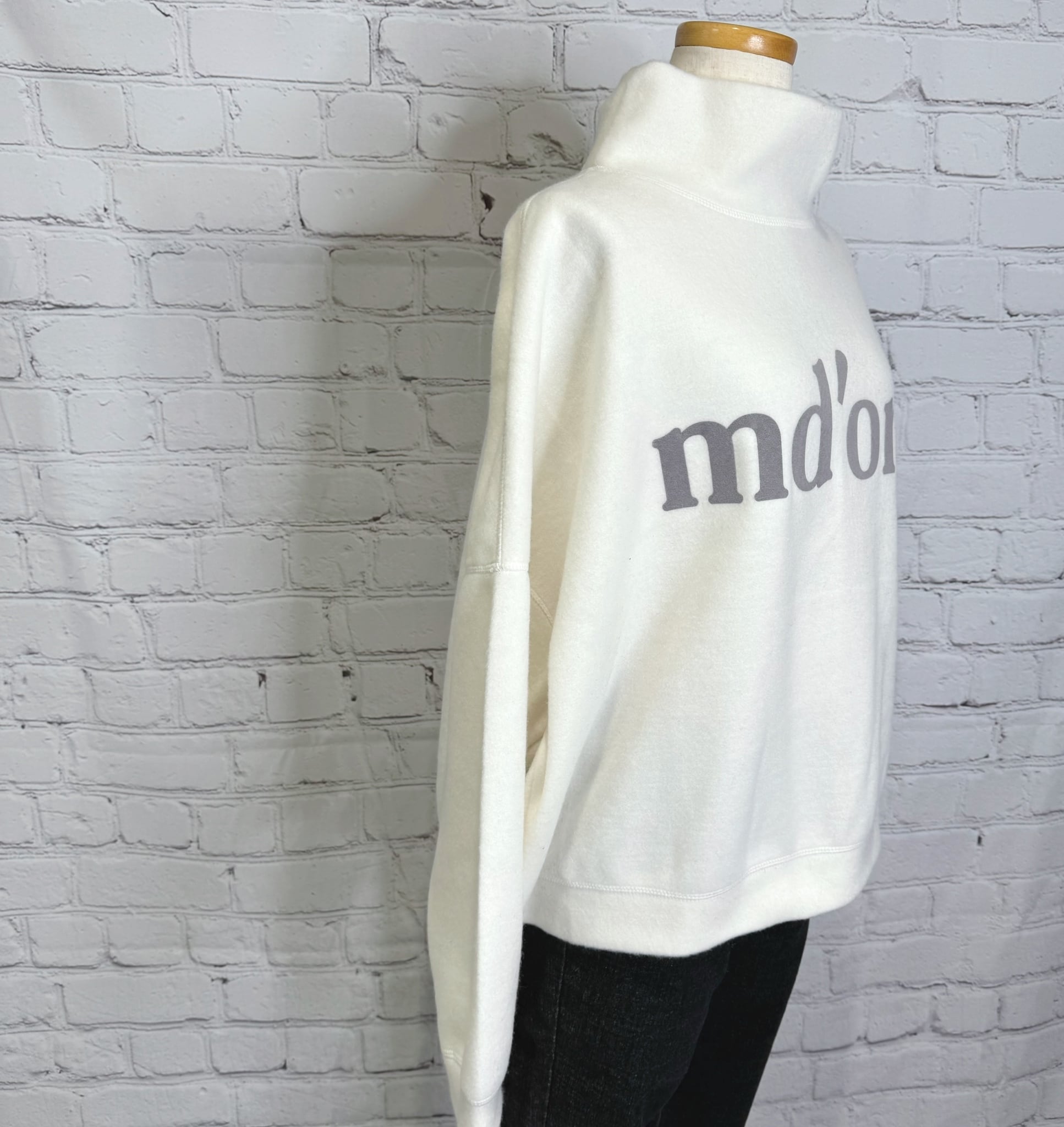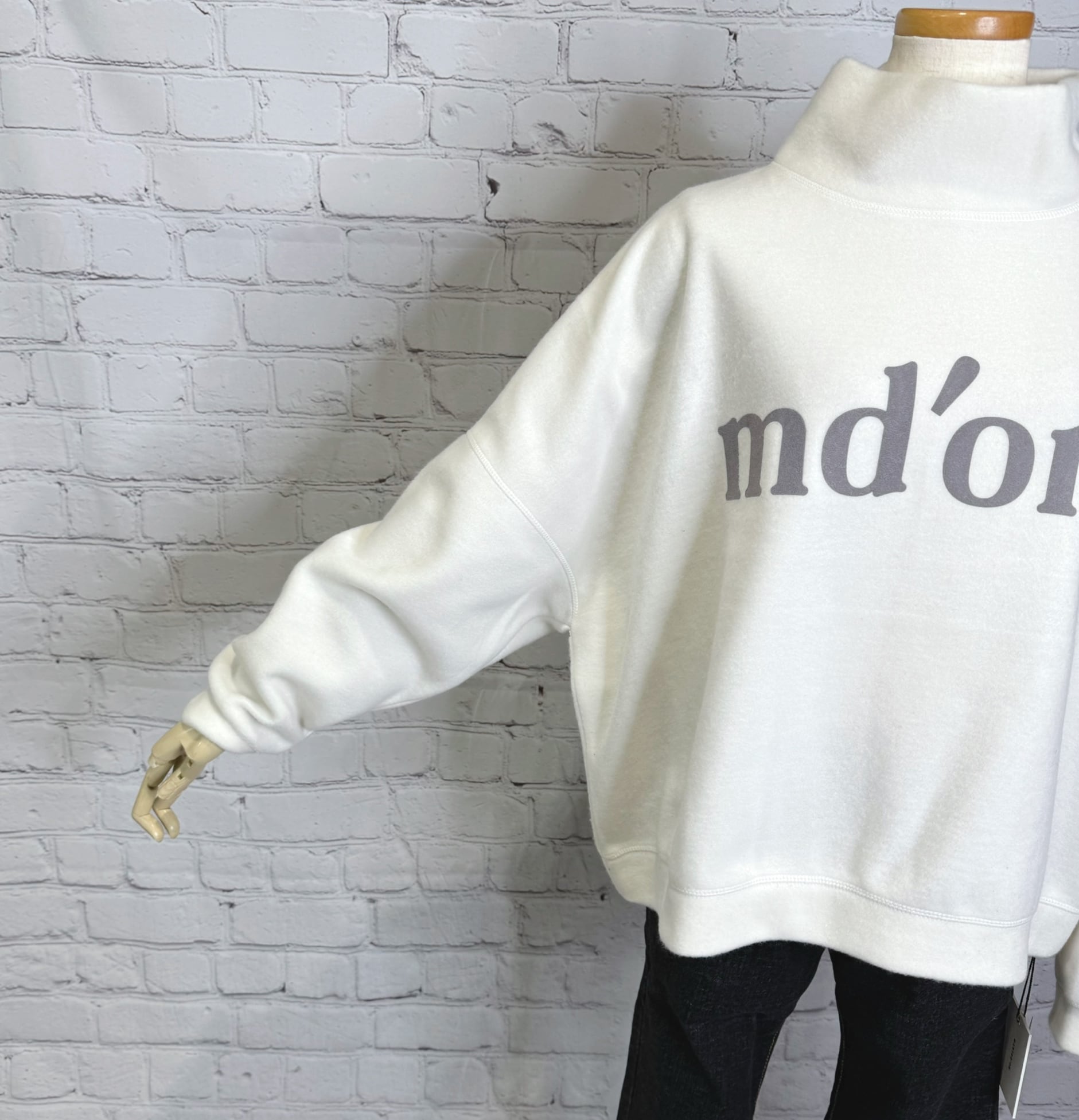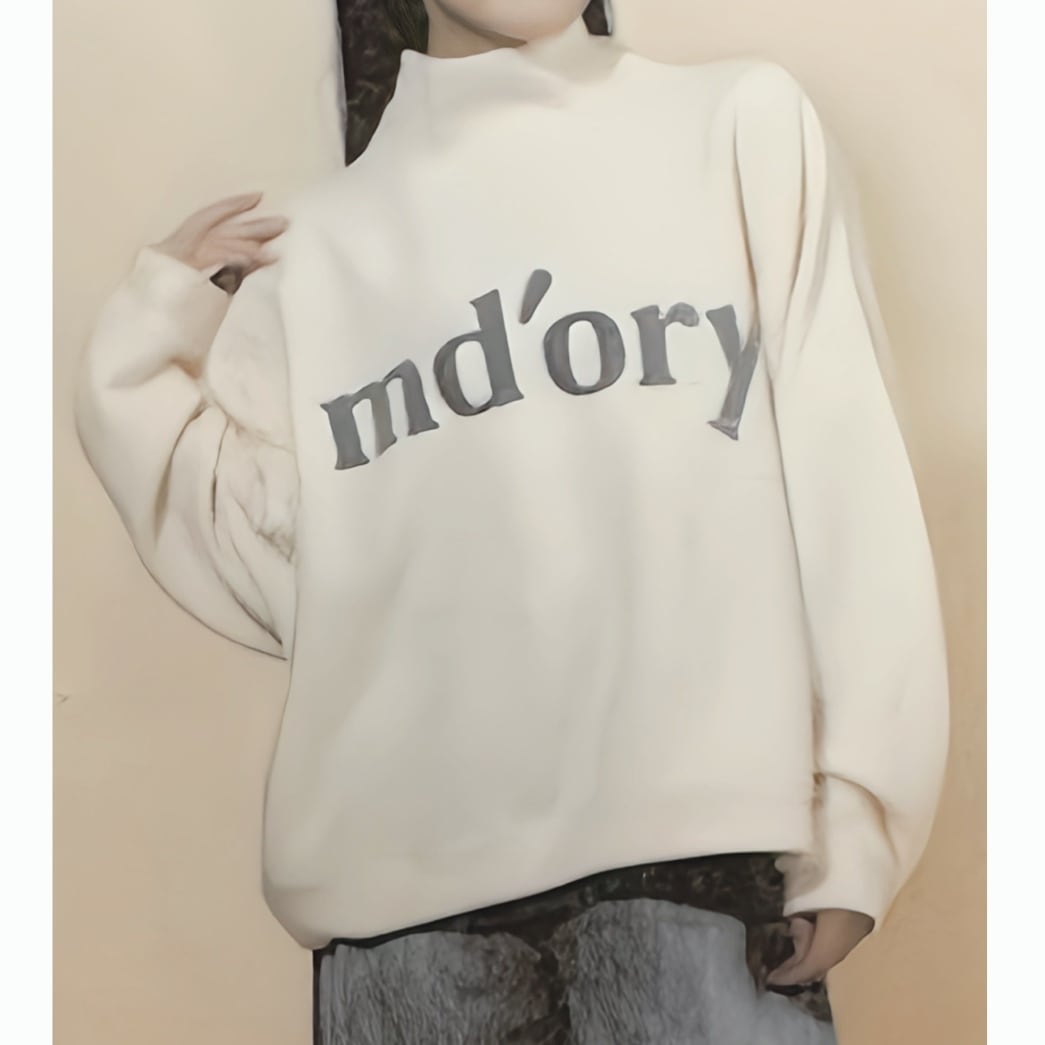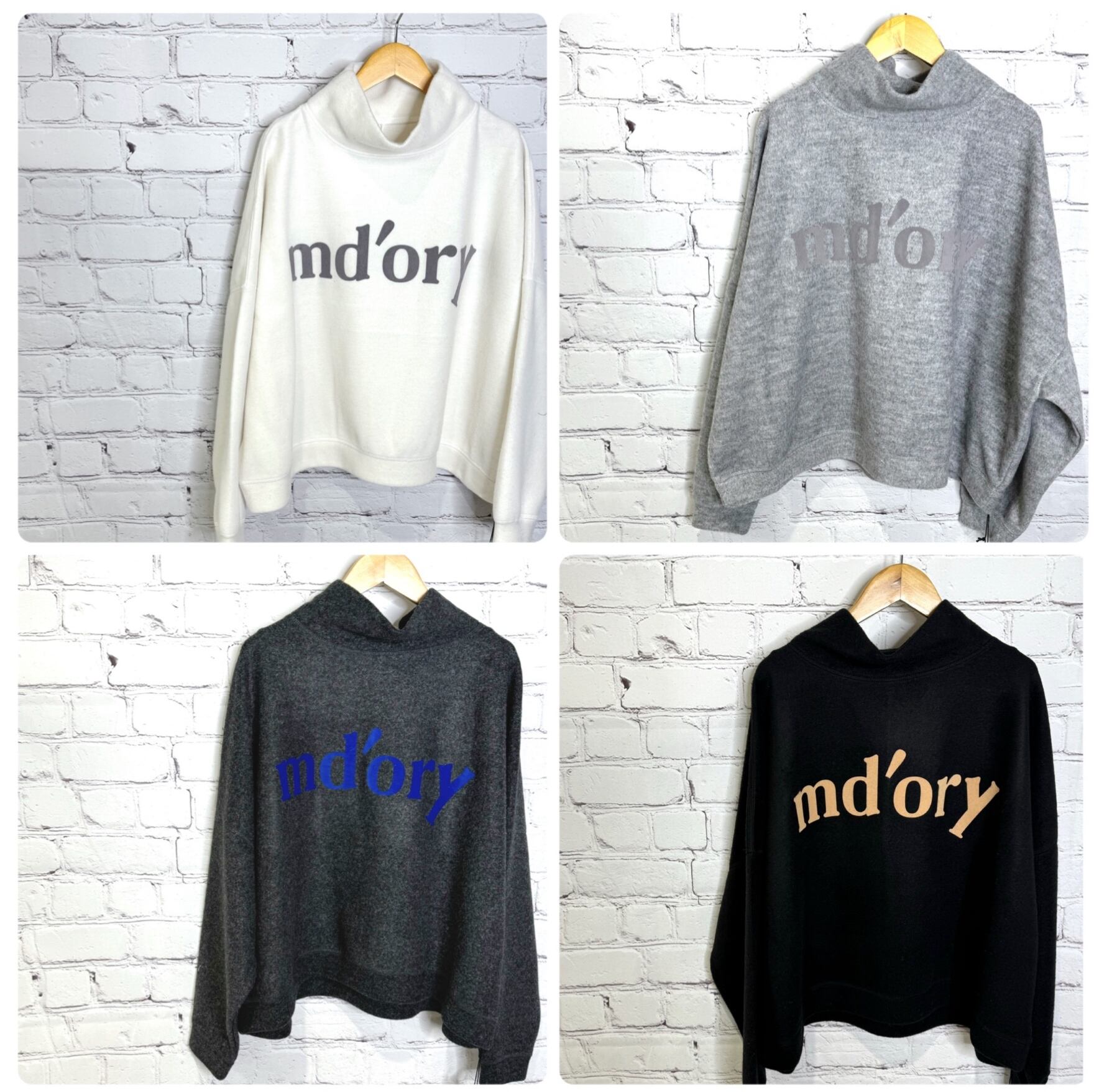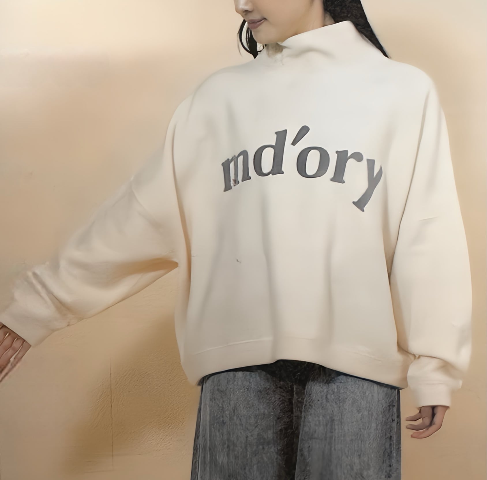MARIED'OR大人気シリーズのフロッキープリントPOのハイネック起毛タイプ!ふわっと温かみのある素材で体のラインを拾わない程よいシルエット。ロゴはフロッキー加工になっていて大人可愛い♡ 首元も詰まり過ぎない、程よいハイネックでこなれ感をプラス。ロゴの配色がそれぞれ可愛いいおすすめのアイテムです。お家で洗えます。