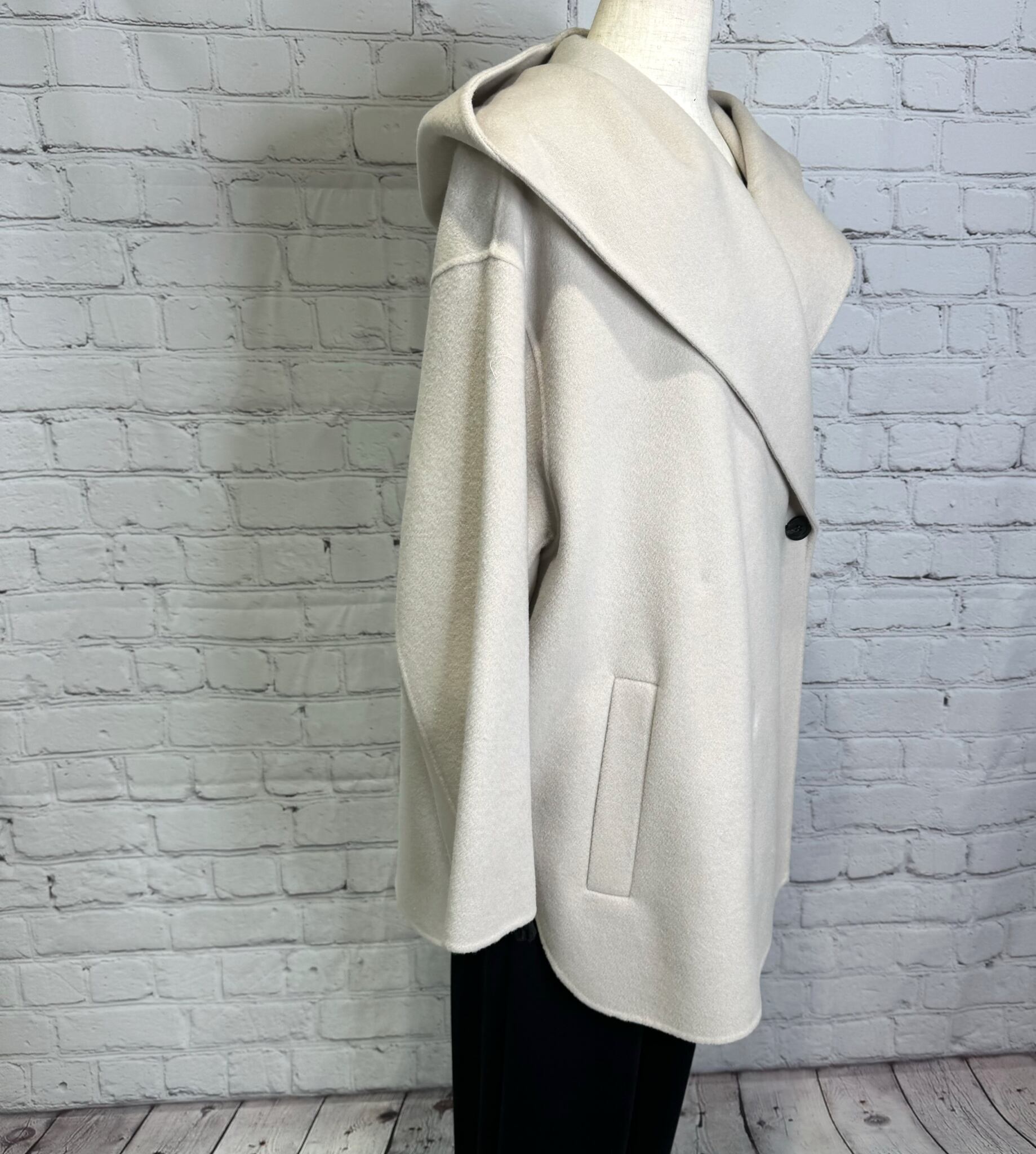 軽くて暖かいダブルフェイスのフーディコートです。ゆったりしたサイズ感で同素材のベルト付きですので、ベルトありできれいめコーデにしたり、ベルトを外してカジュアルにしたり、合わせるインナーやボトムスで色々なコーデをお楽しみ頂けます。 ポケットあり。