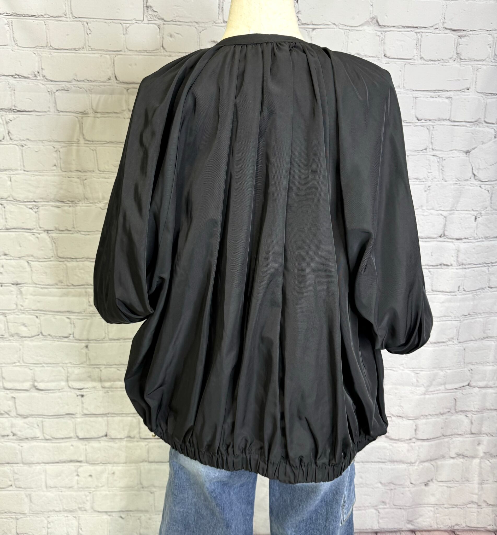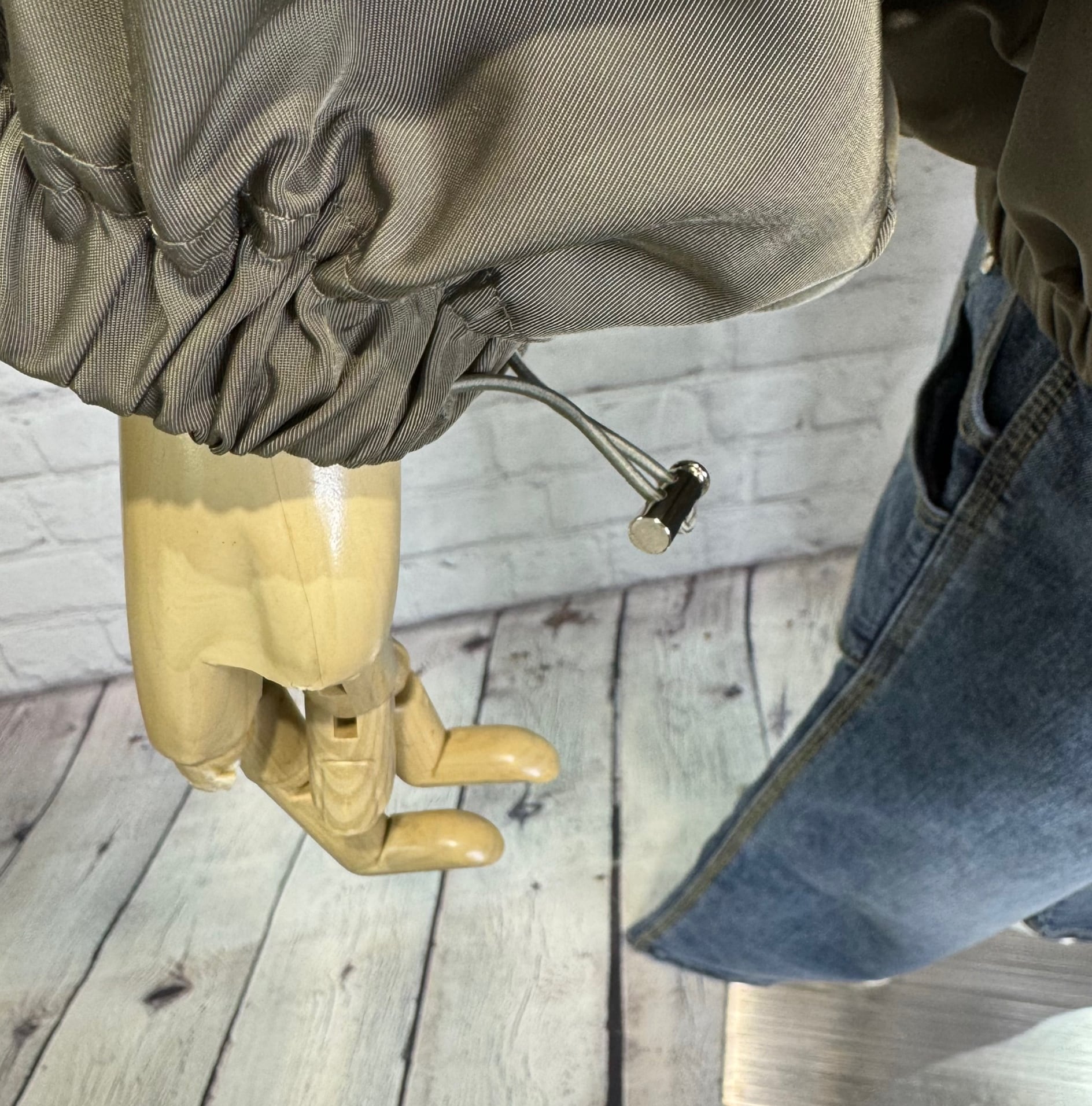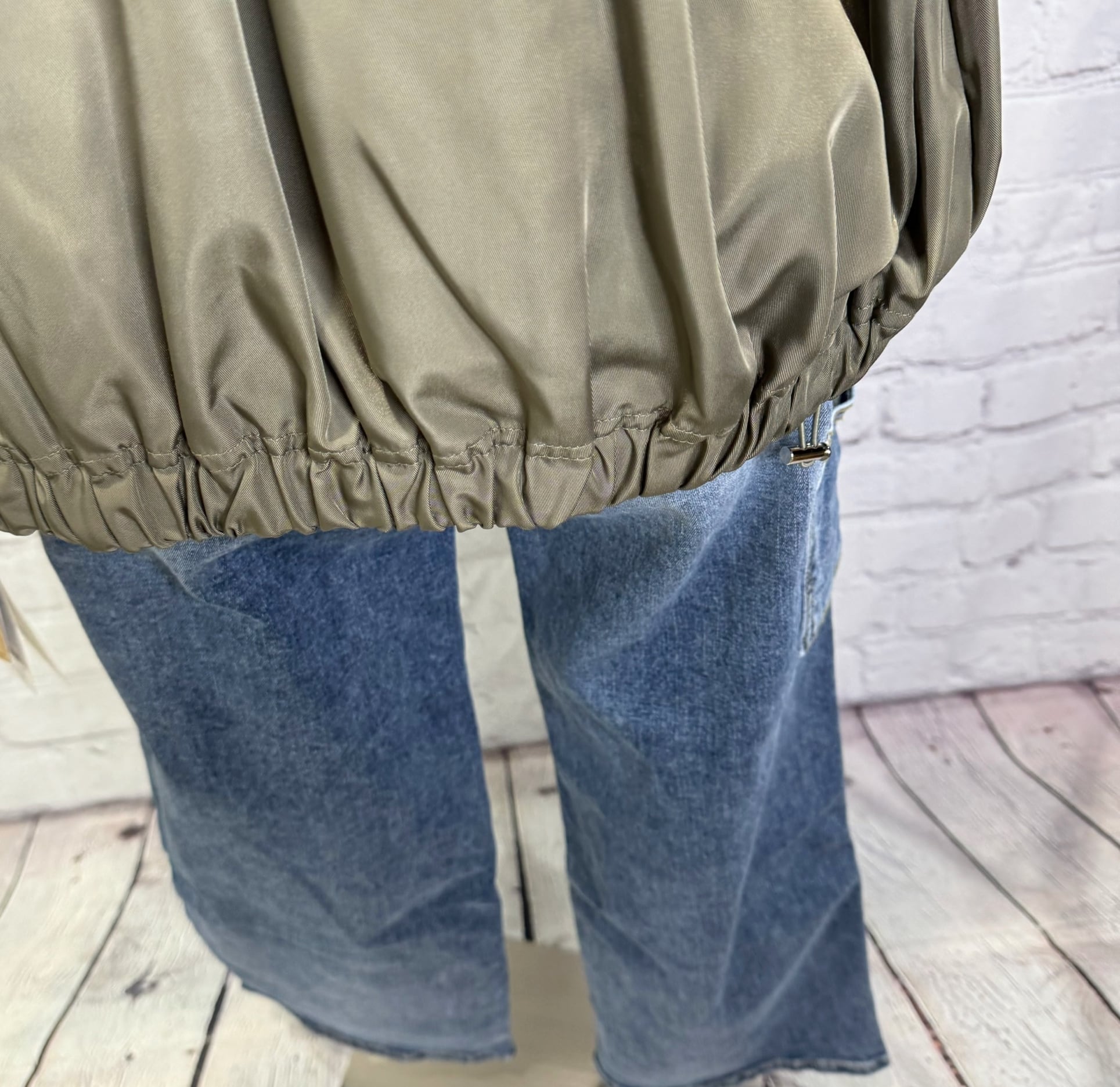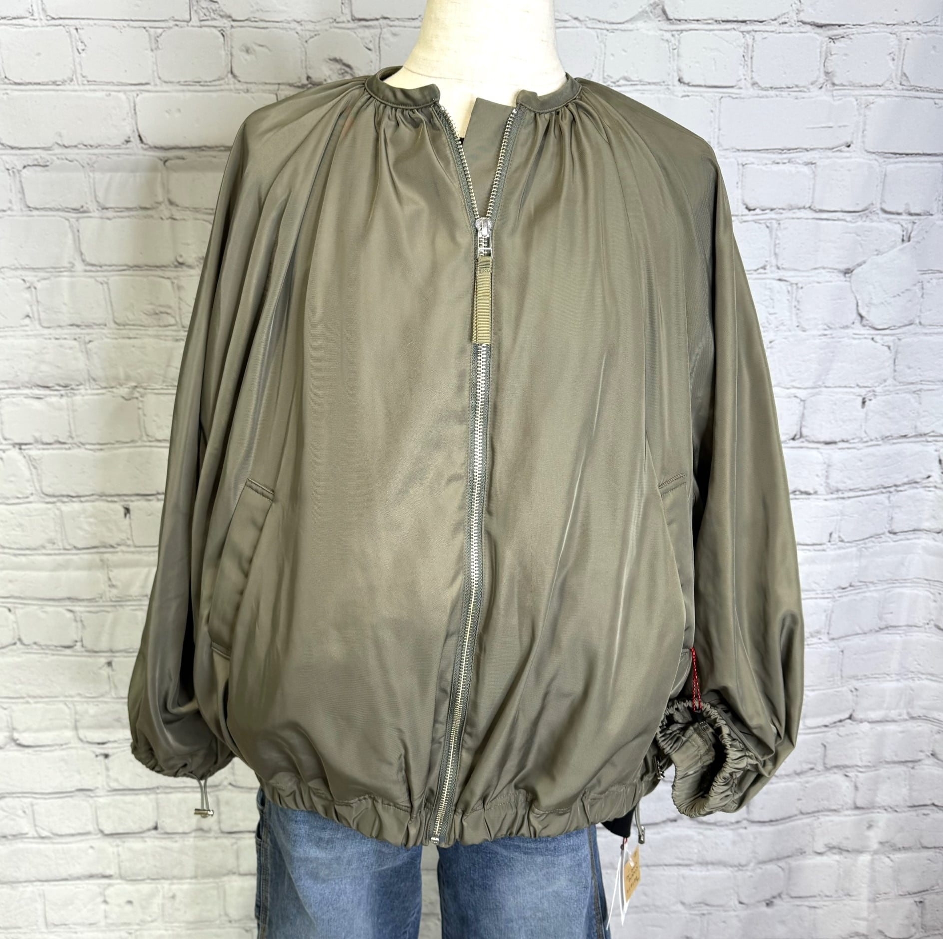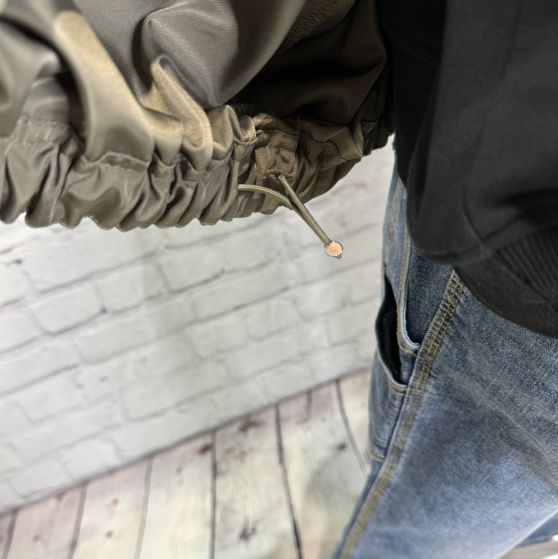 ゆるシルエットのブルゾンです。袖口と裾のドロストでシルエットを変えられます。ノーカラーなのでカジュアルに見えがちなブルゾンに女性らしさをプラスした大人可愛さもプラス♡ ゆるシルエットなのでオーバーサイズのトップスとの相性も良く、程よい丈感でパンツでもスカートでもボトムス選ばずコーデしやすいおすすめアイテムです。ポケットあり。