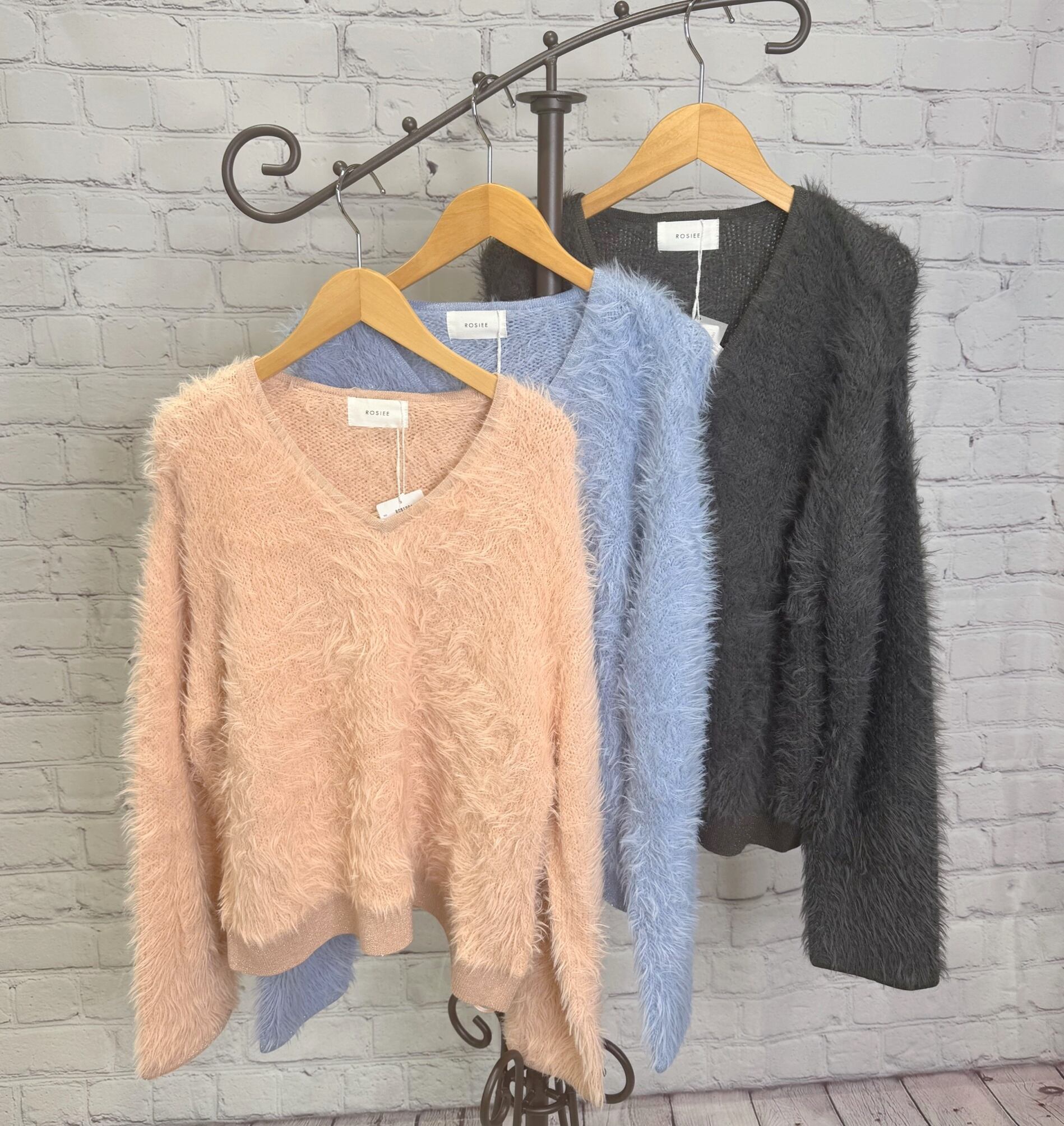 SALE!ROSIEE ロージー ラメ衿Vネックシャギーニット R081204